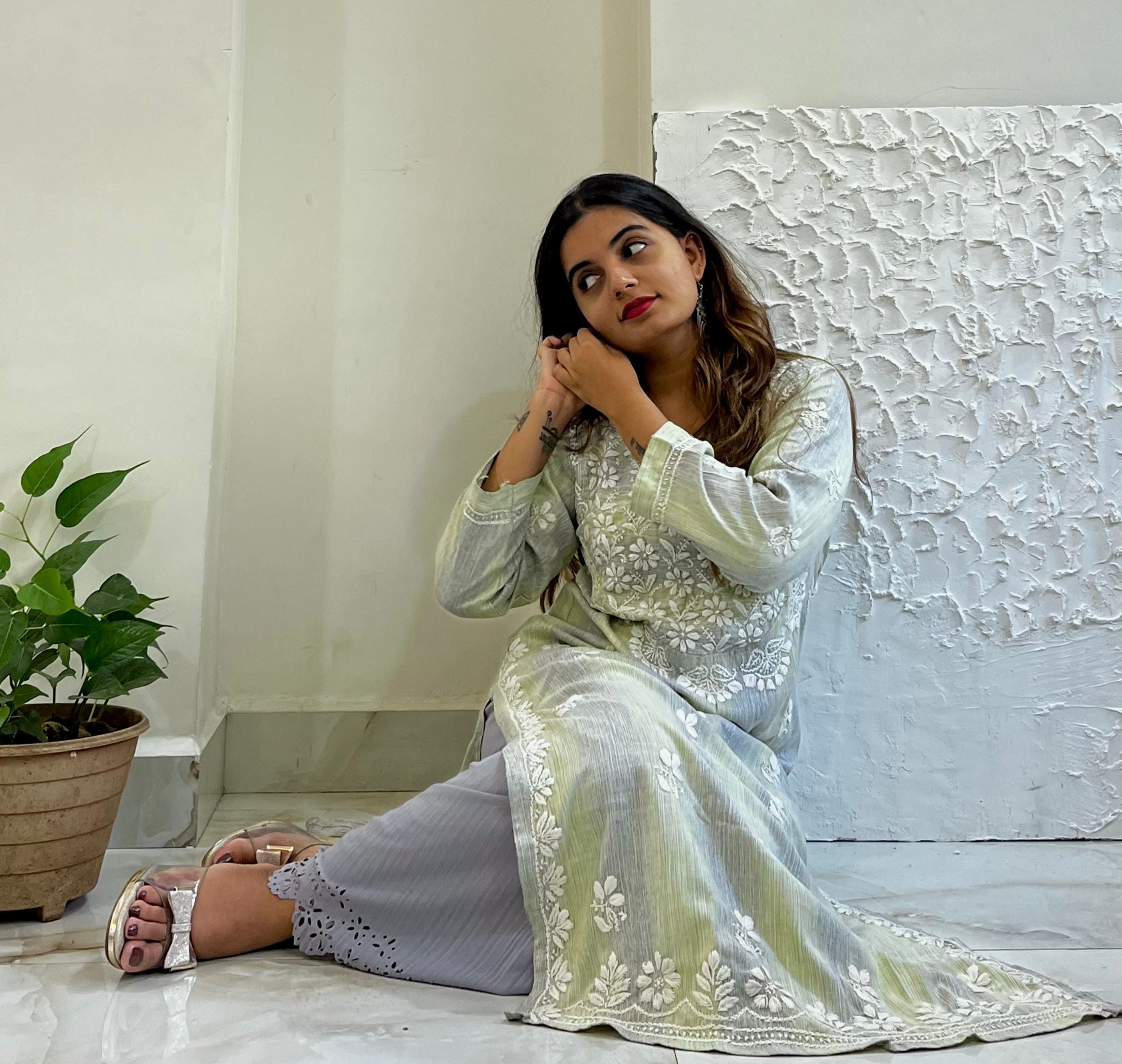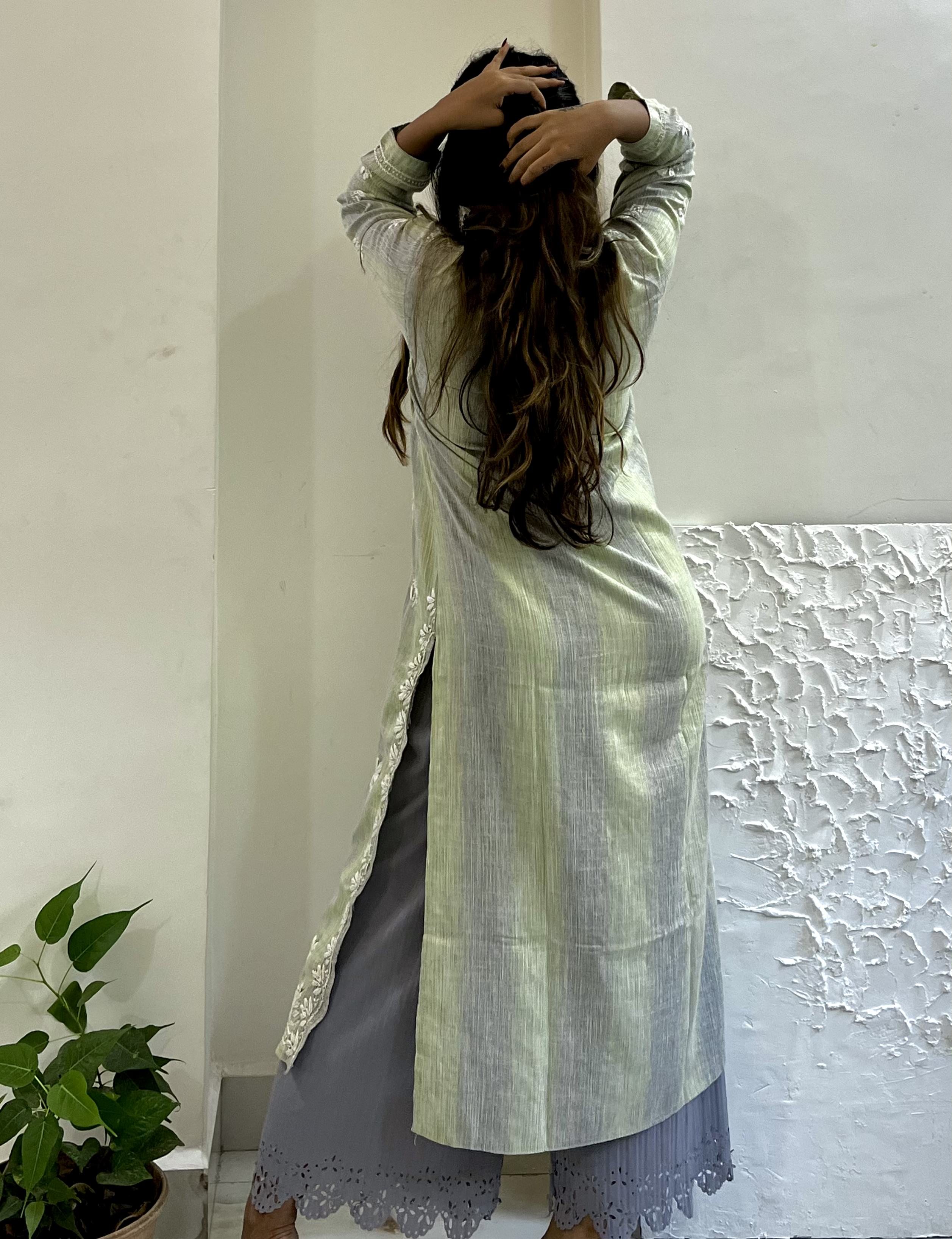 Green with Grey Chikankari Kurti