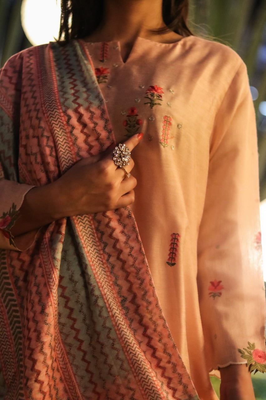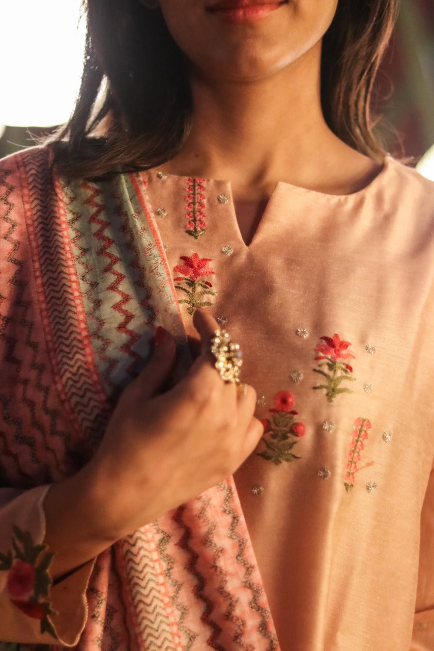 Light Pink Embroidered Silk Suit Set
