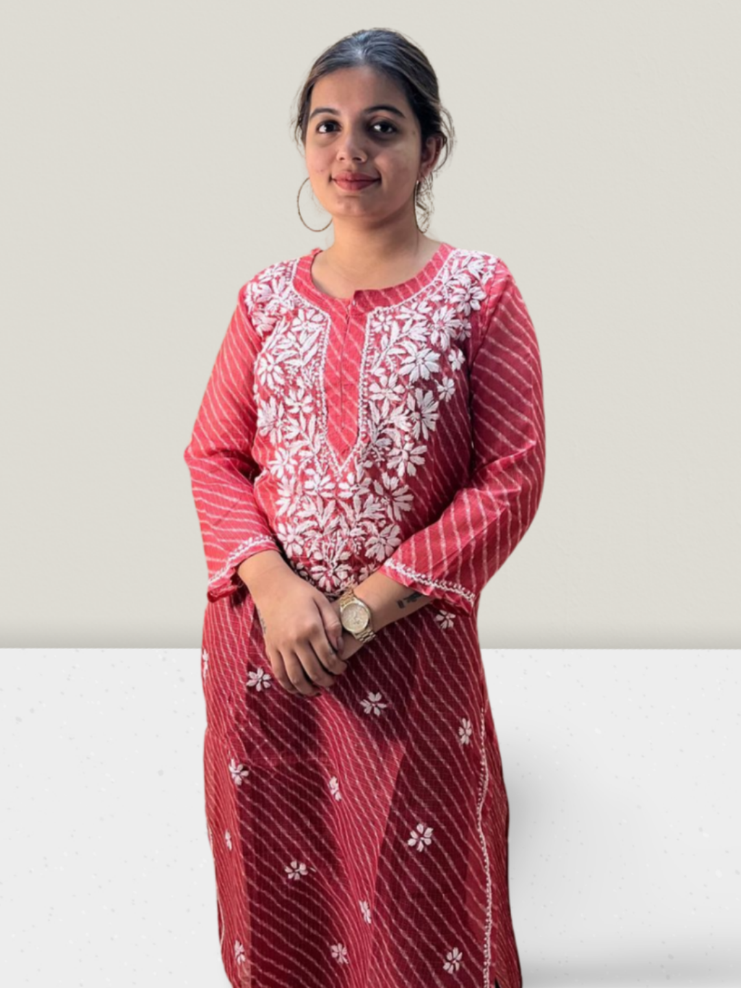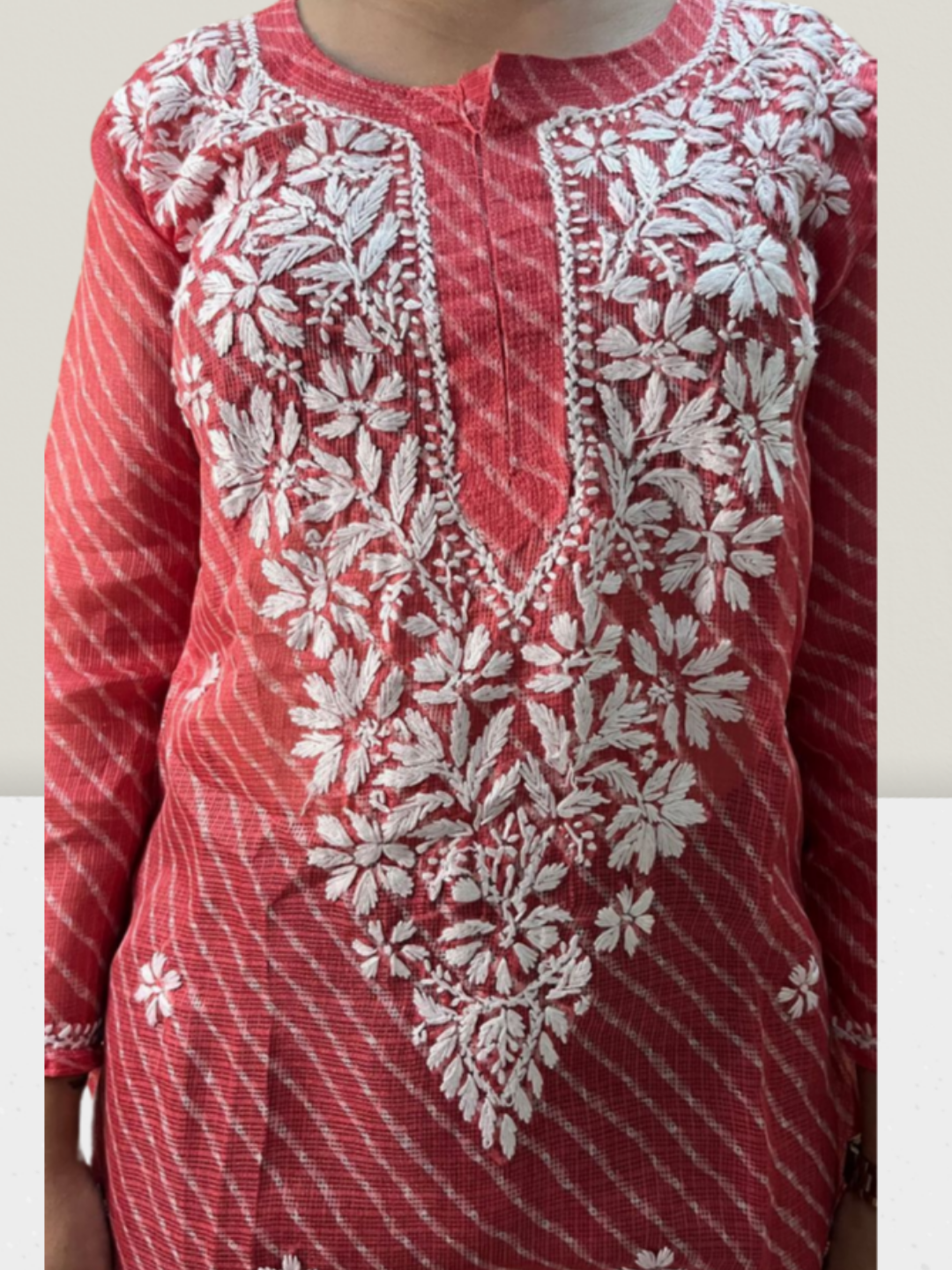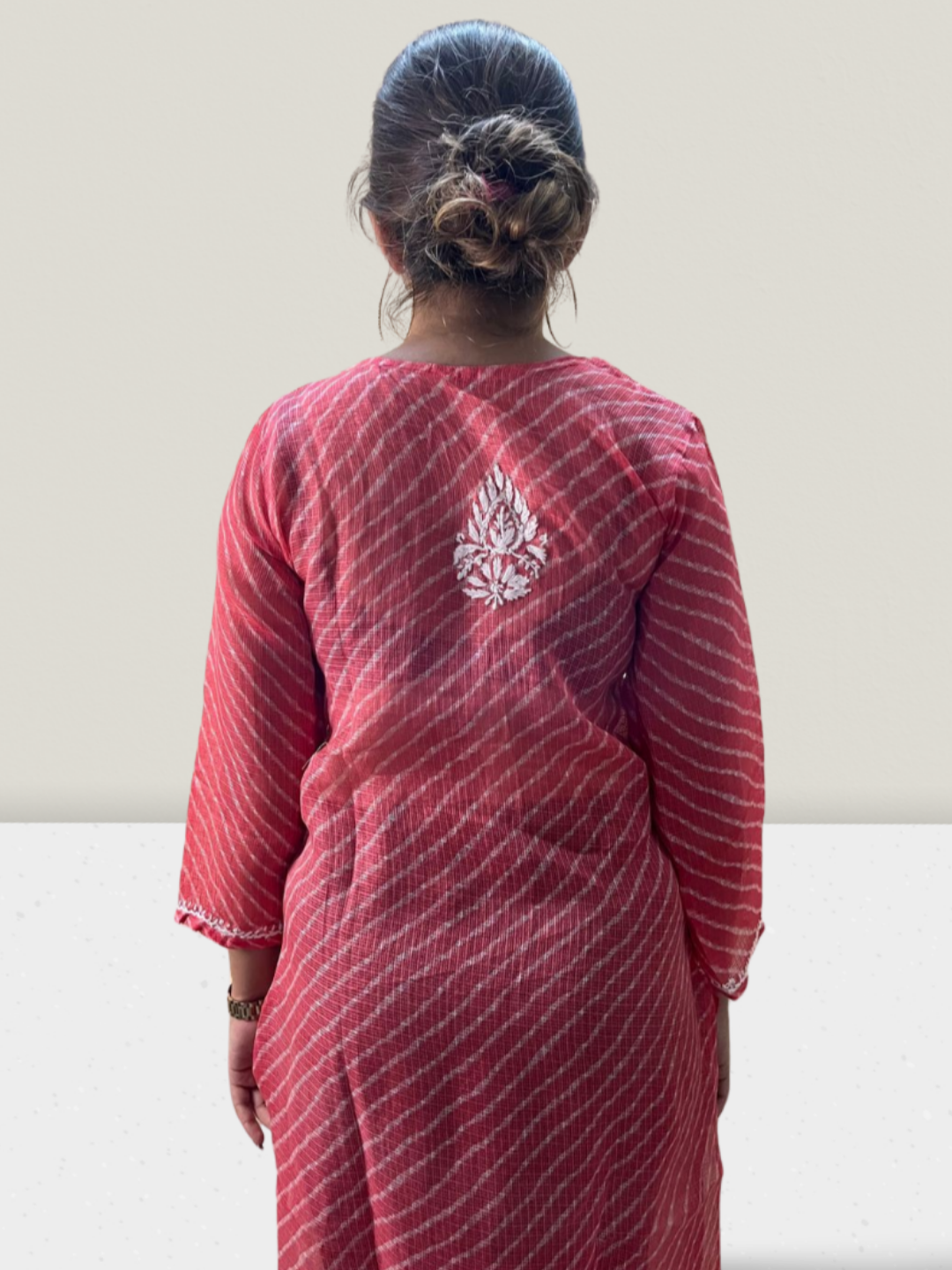 Pink Lahariya Kota Cotton Chikankari Kurti