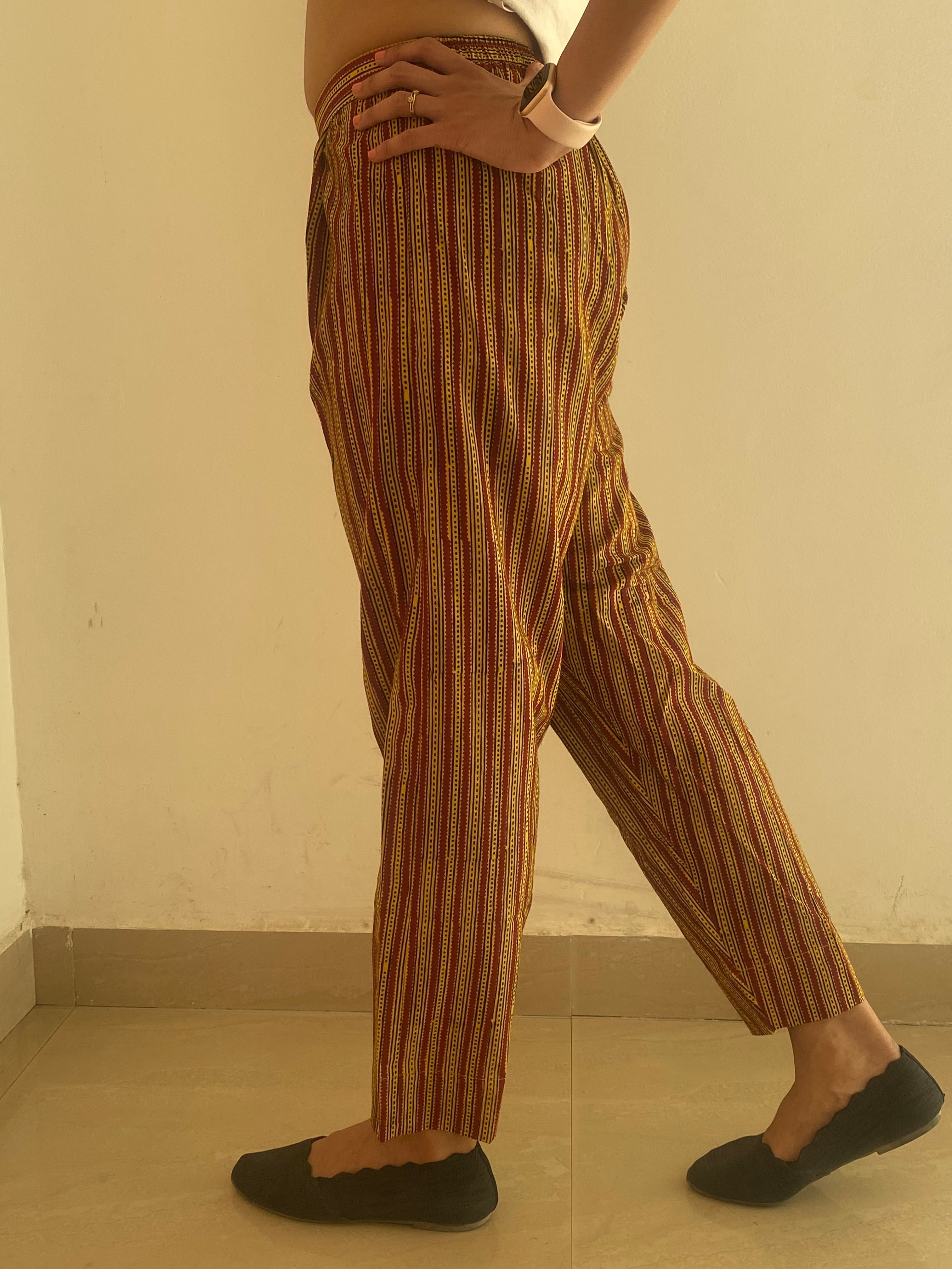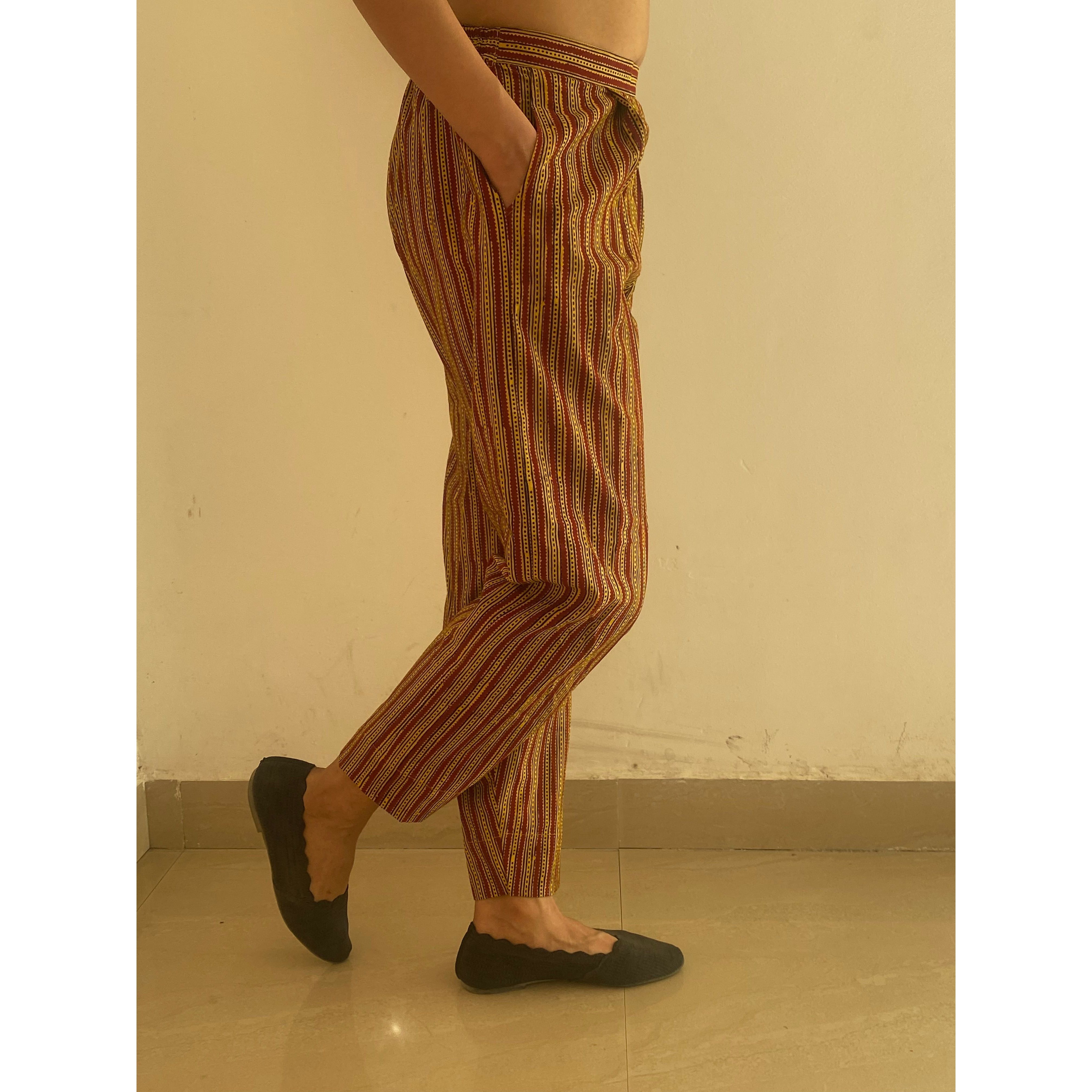YELLOW COTTON,TROUSER WITH BAGH HAND BLOCK PRINTS