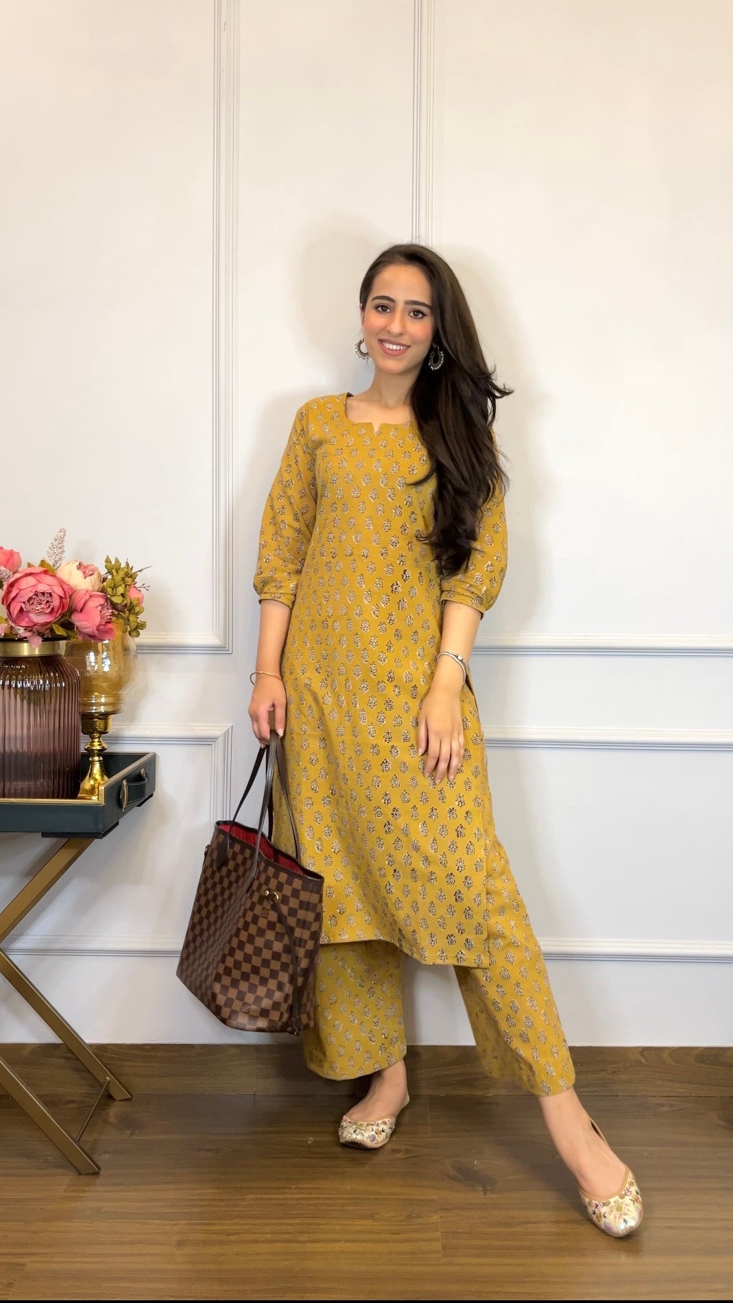 YELLOW COTTON PALAZZO WITH BAGRU HAND-BLOCK PRINT