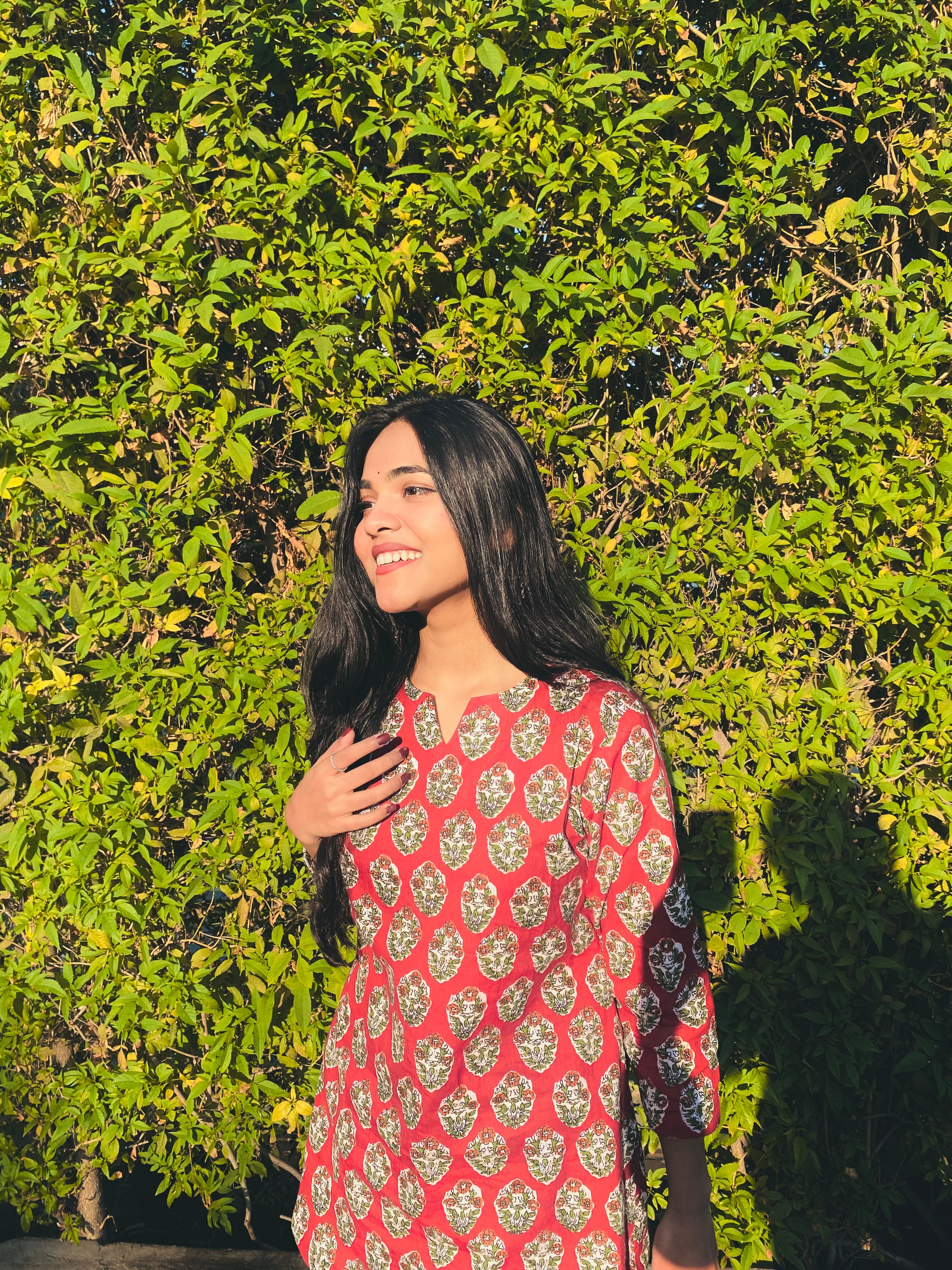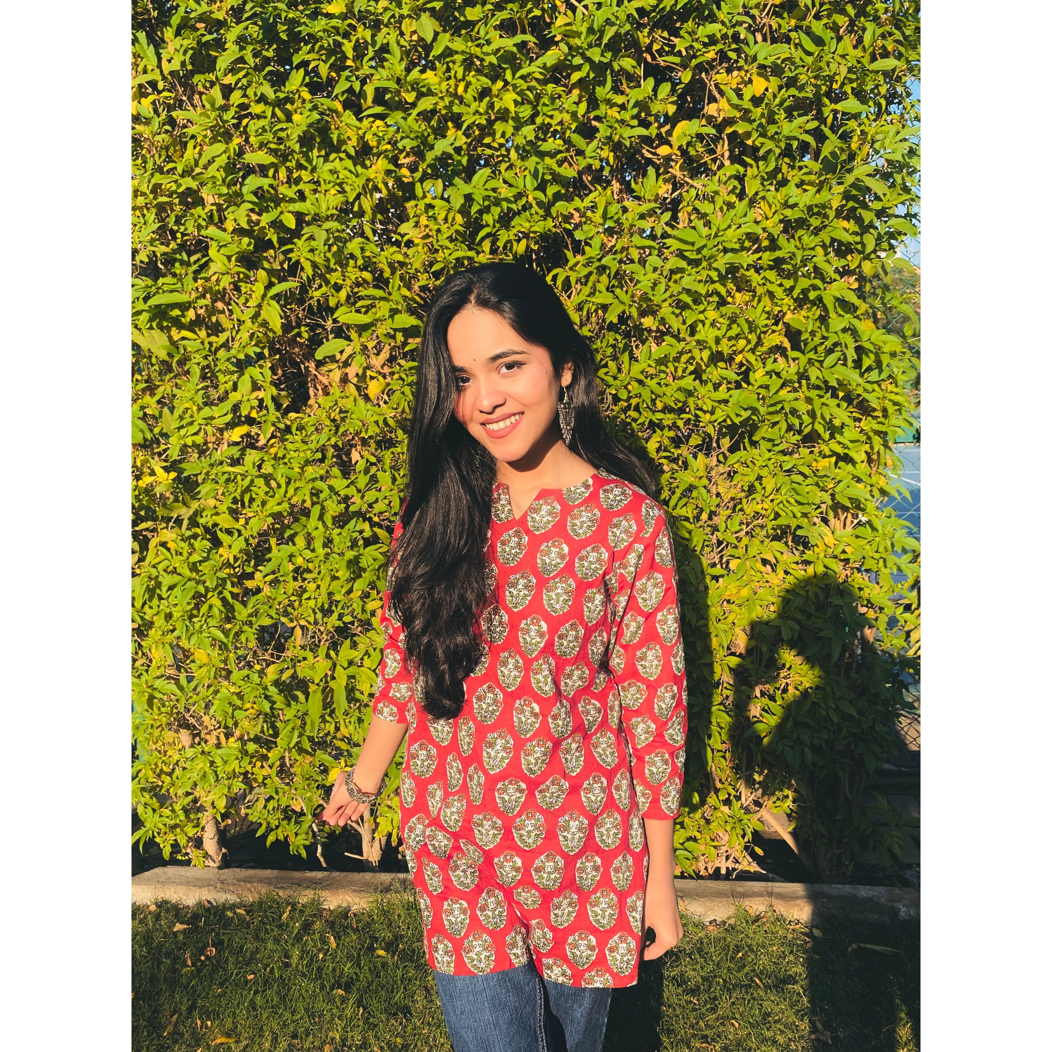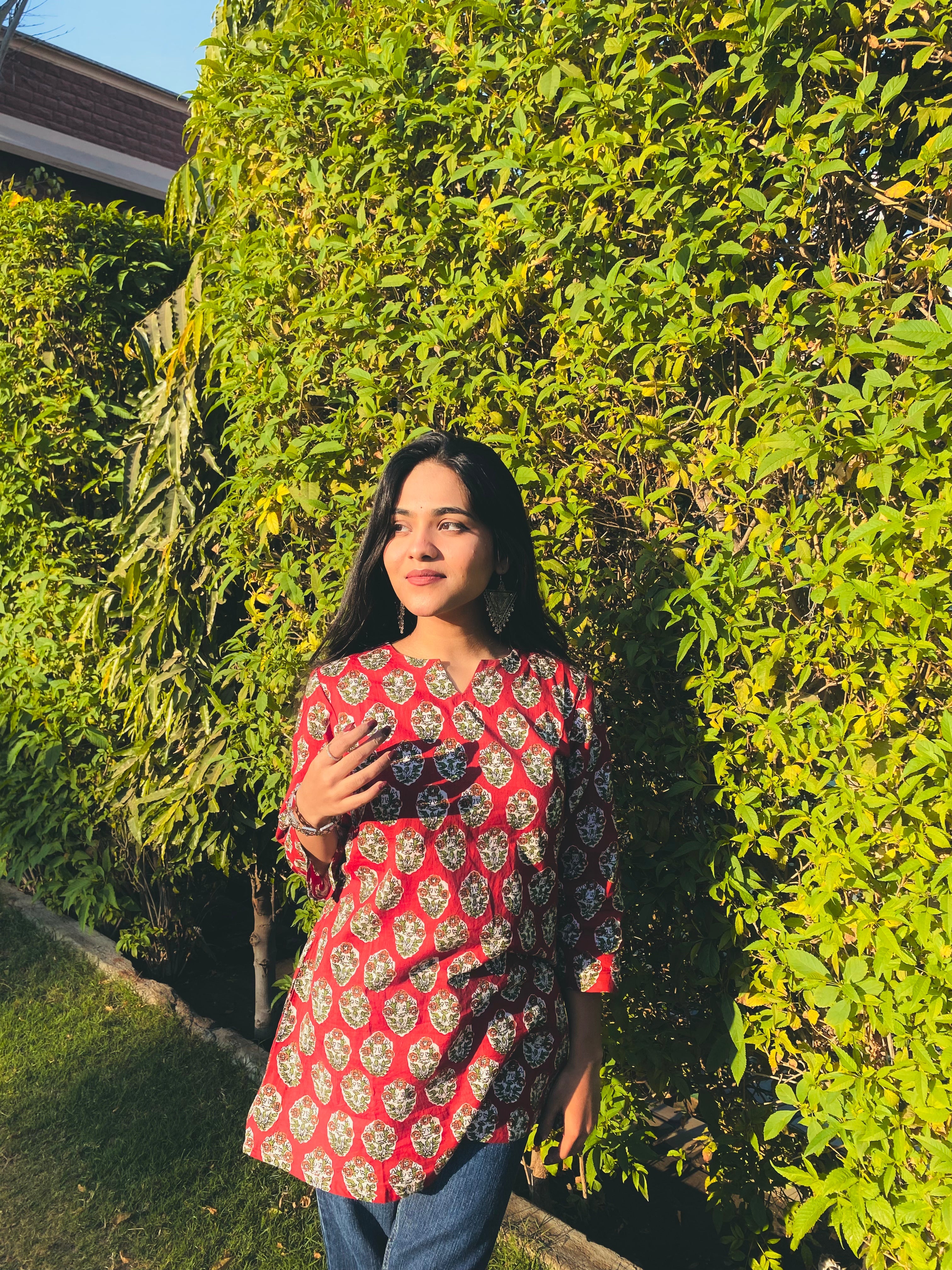 Sangria Red Sanganeri Hand Print Short Kurti
