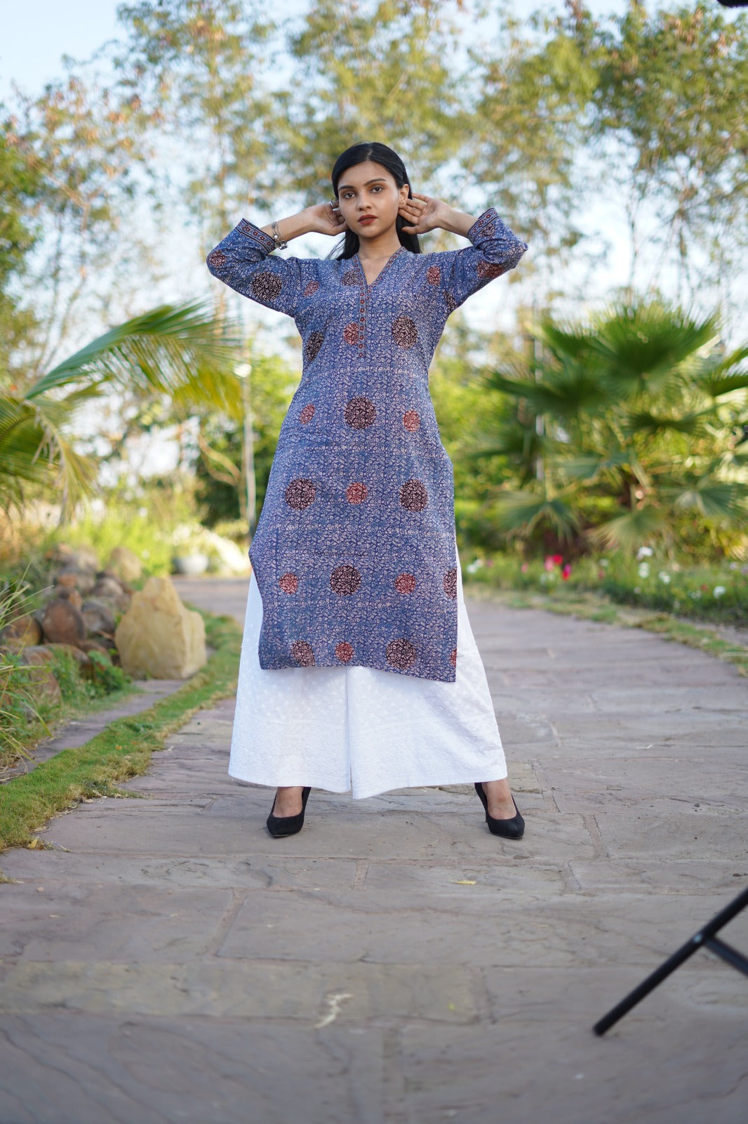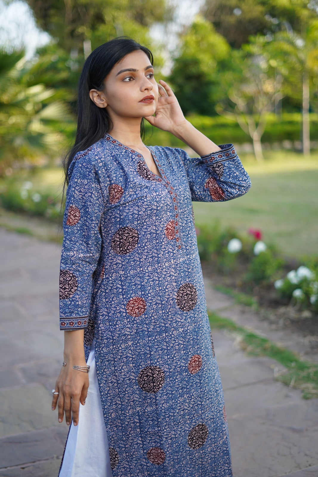 • Premium ajrakh hand block printed traditional wear