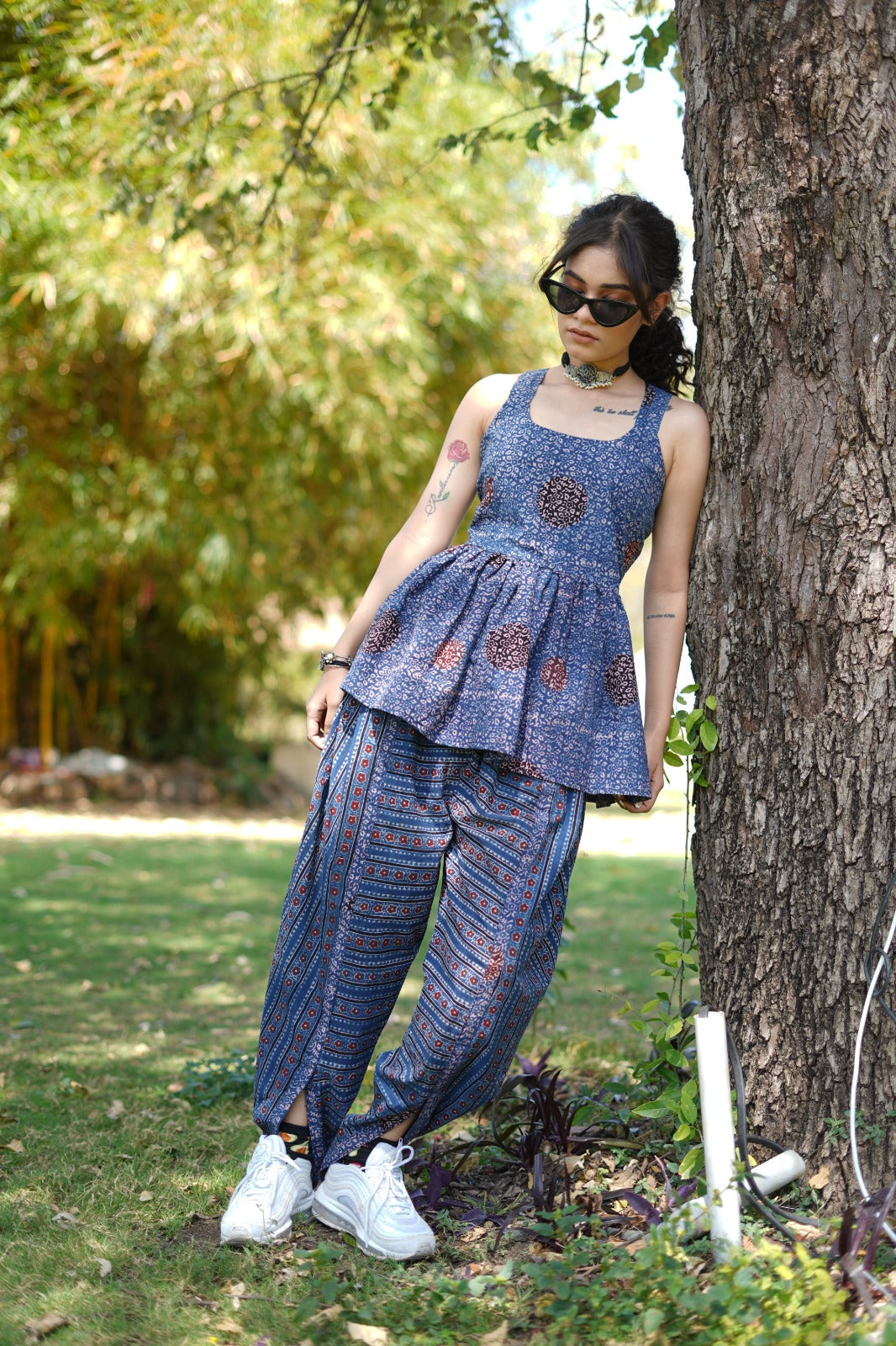 Tulip Ajrakh Hand Block-Printed Cotton Harem Pants