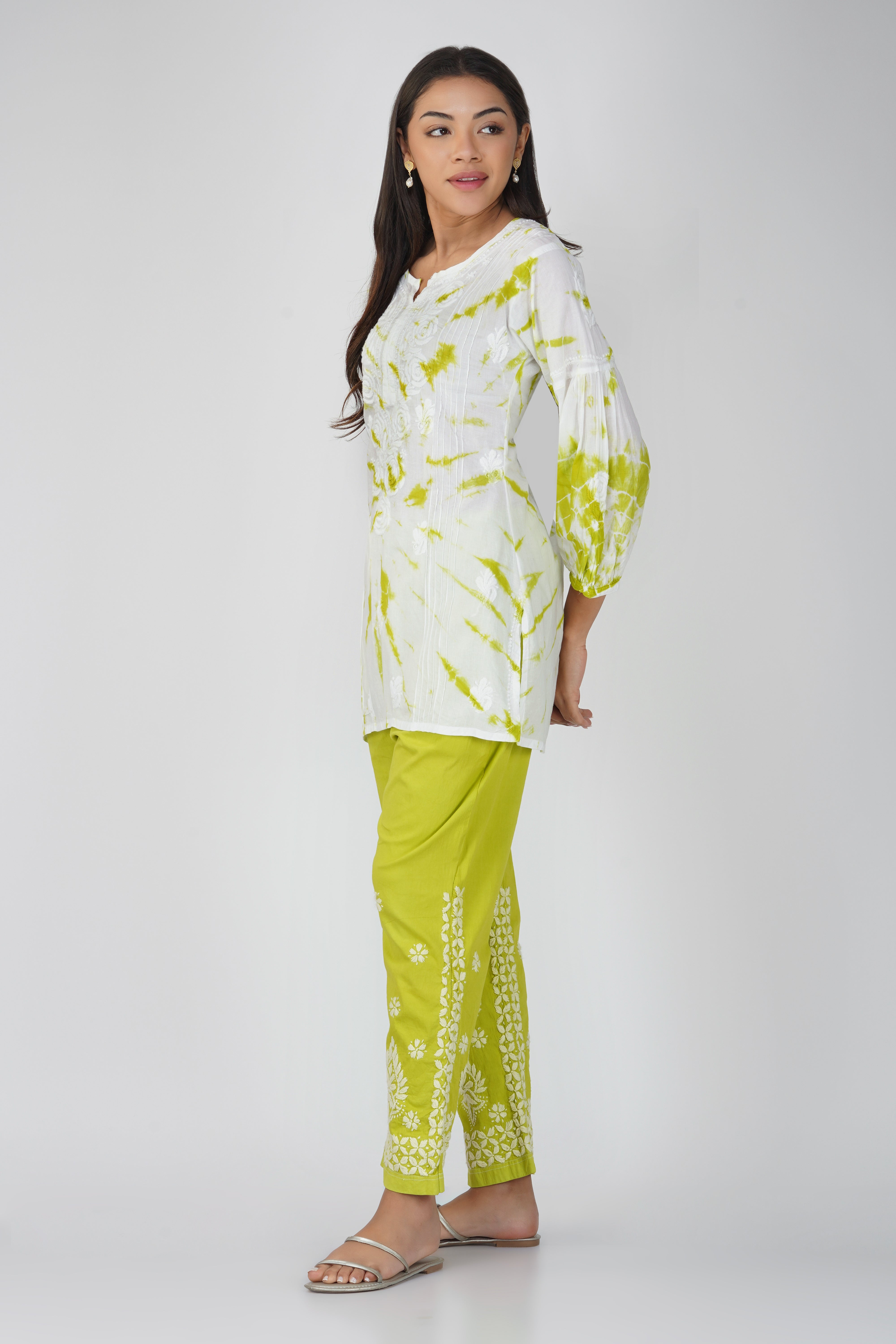 Green Tie - Dye Cotton Embroidered Co-ord Set