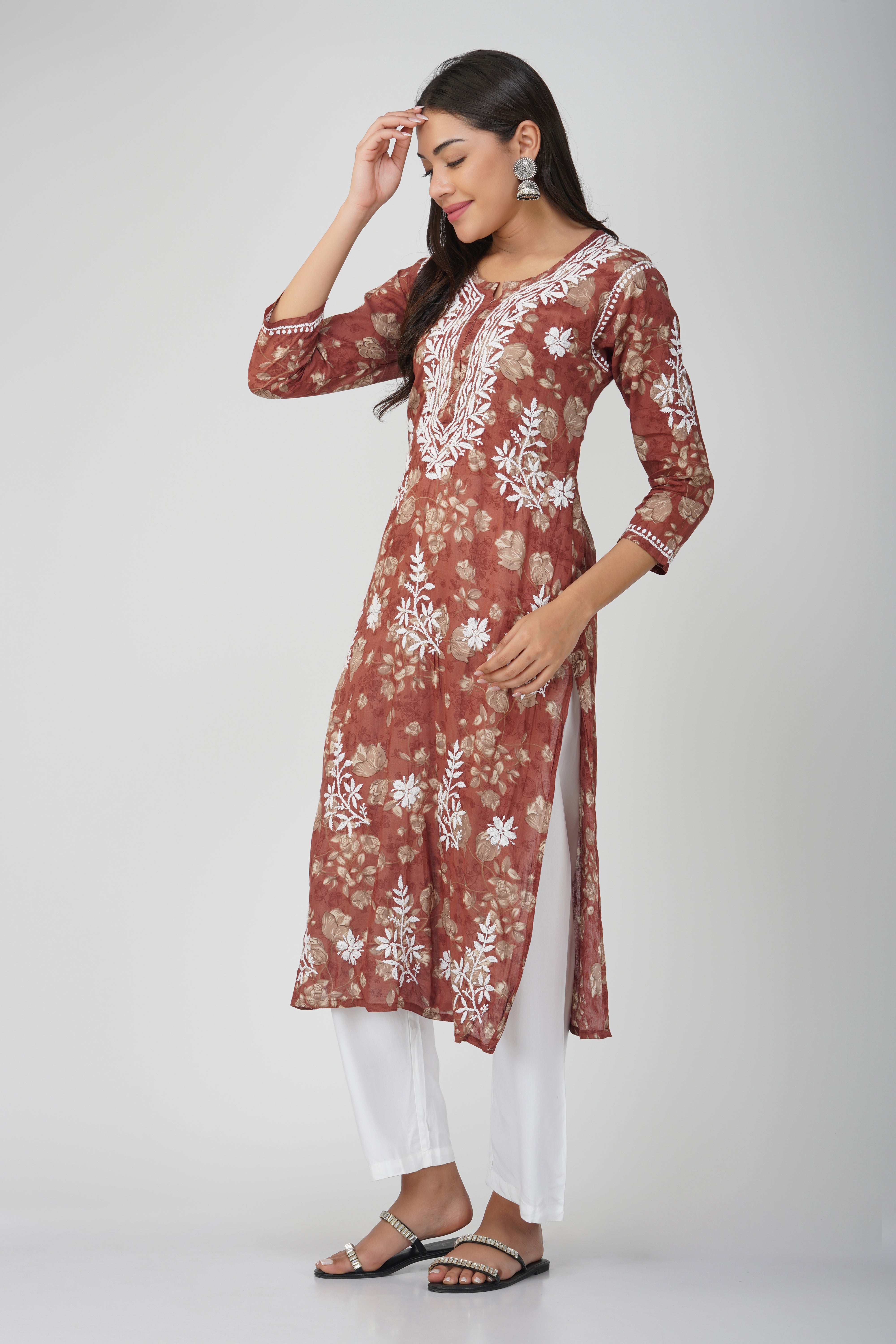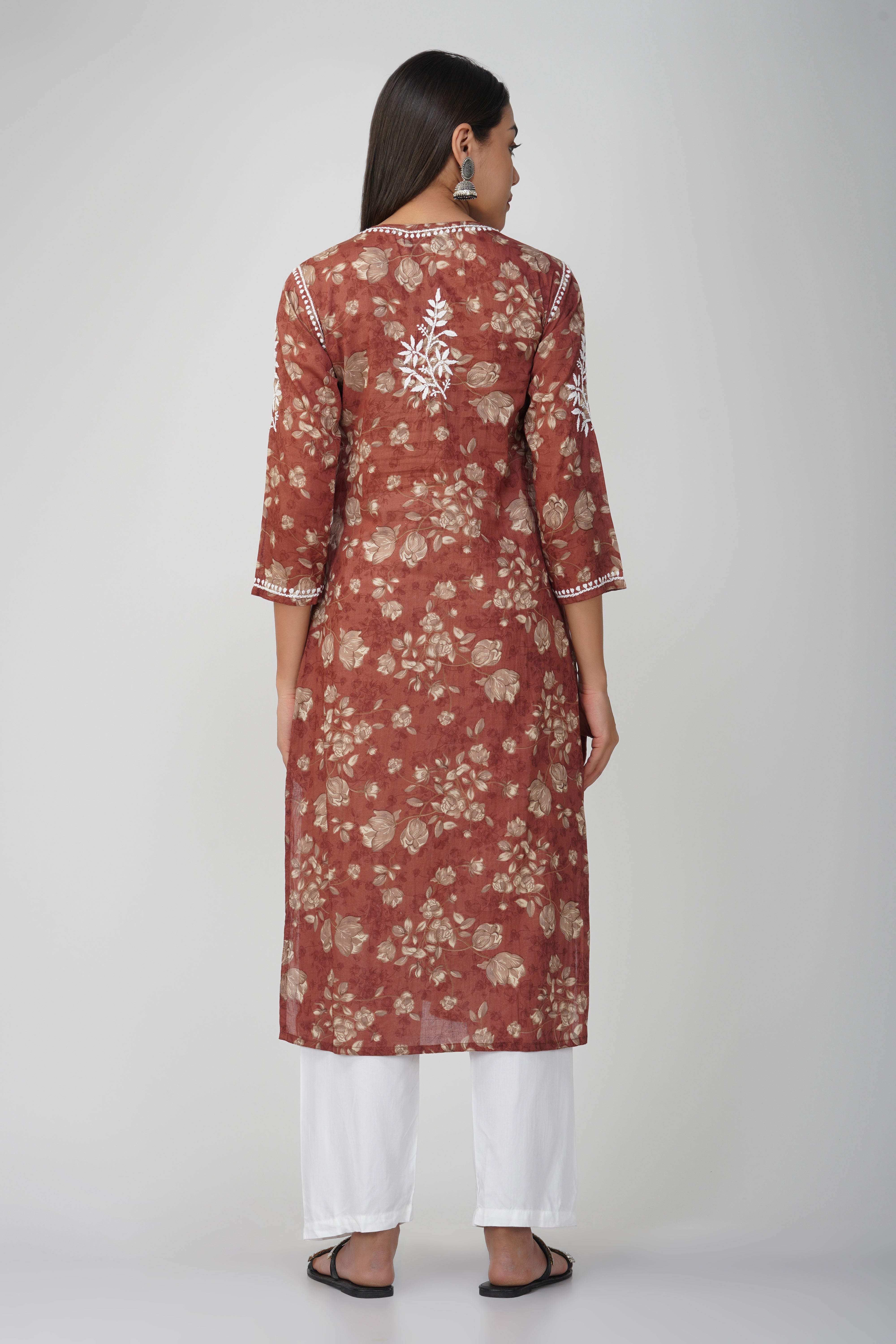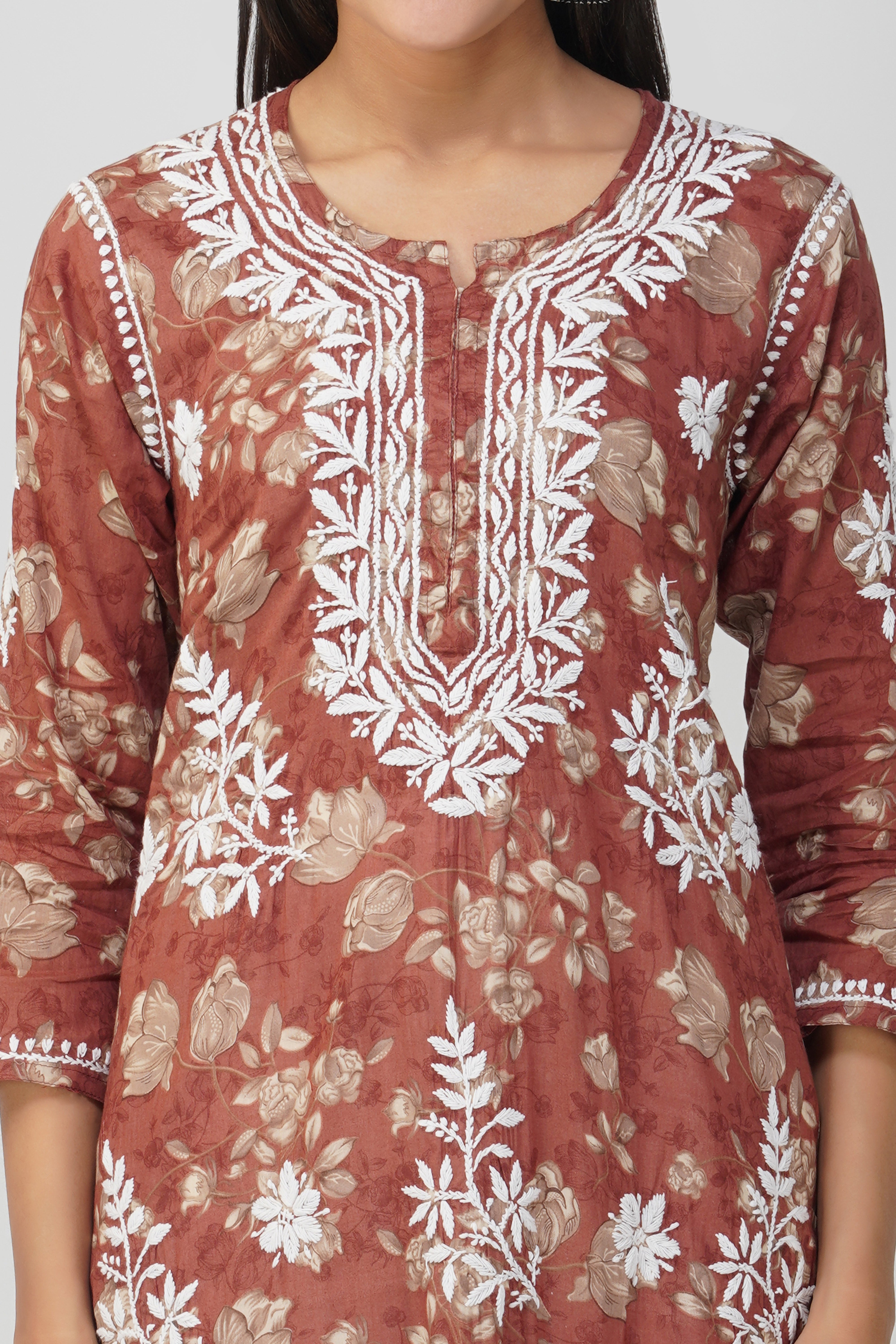 Maroon Mulmul Cotton Chikankari Kurta