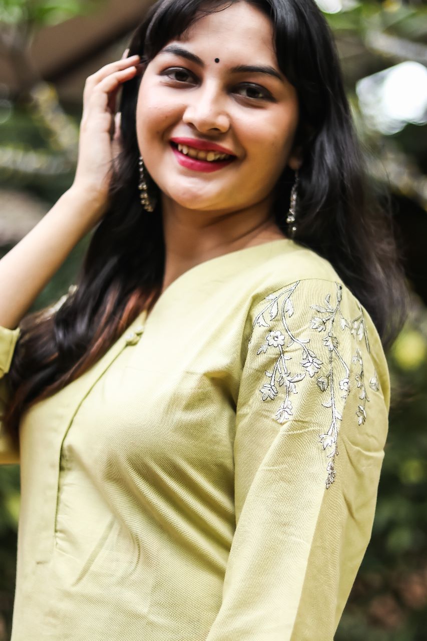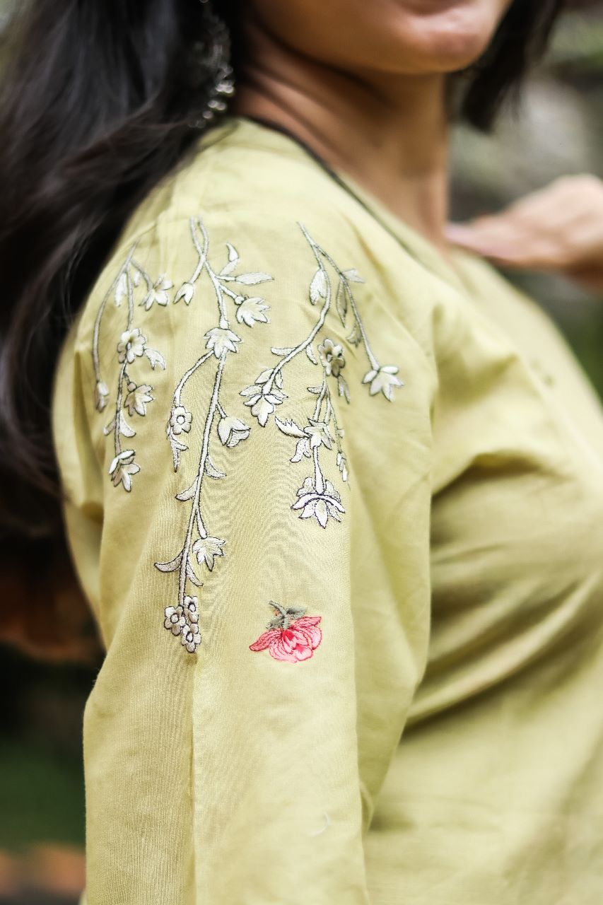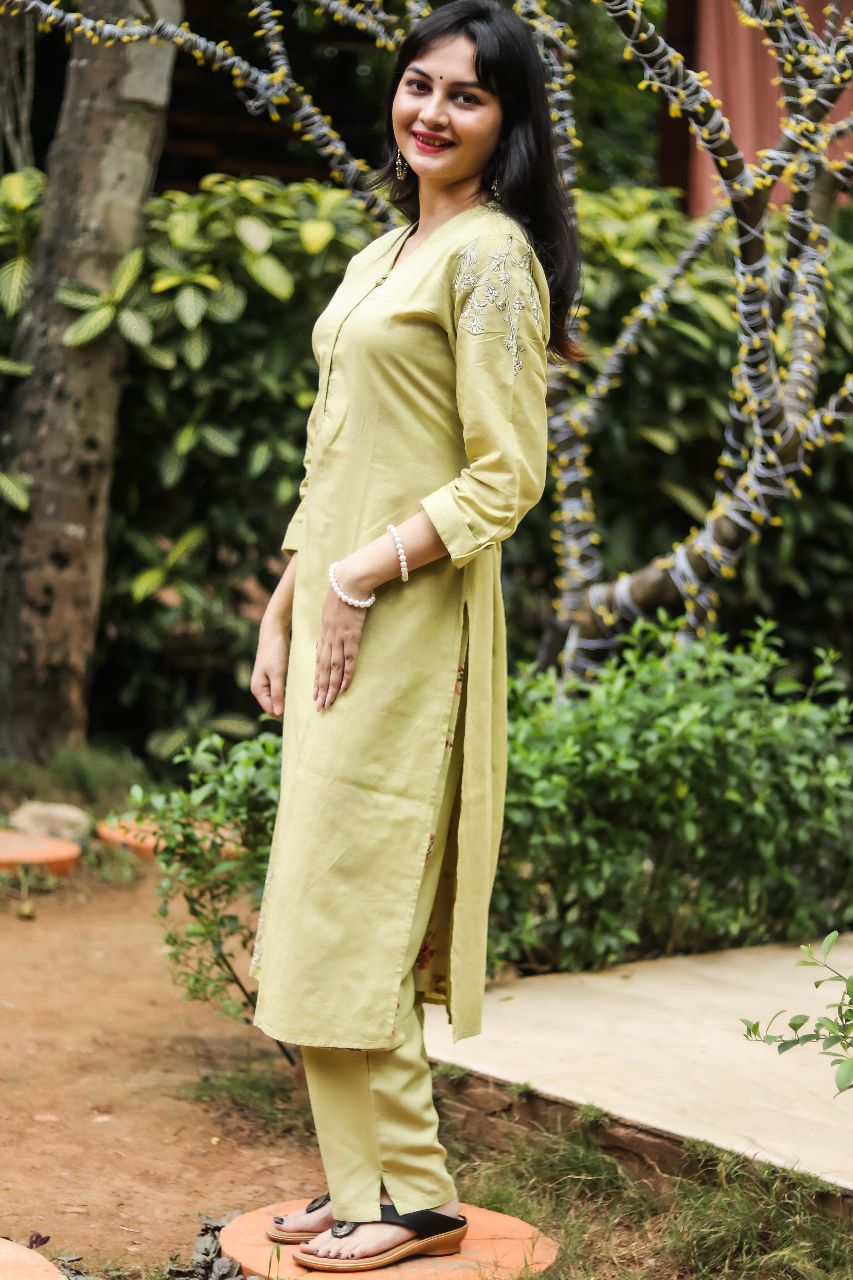 Just the right kind of greens you need for this season. Crafted with premium cotton fabric and exquisite embroidery work, this set is a daily wardrobe essential. Don't forget to walk in style and look different from the crowd.