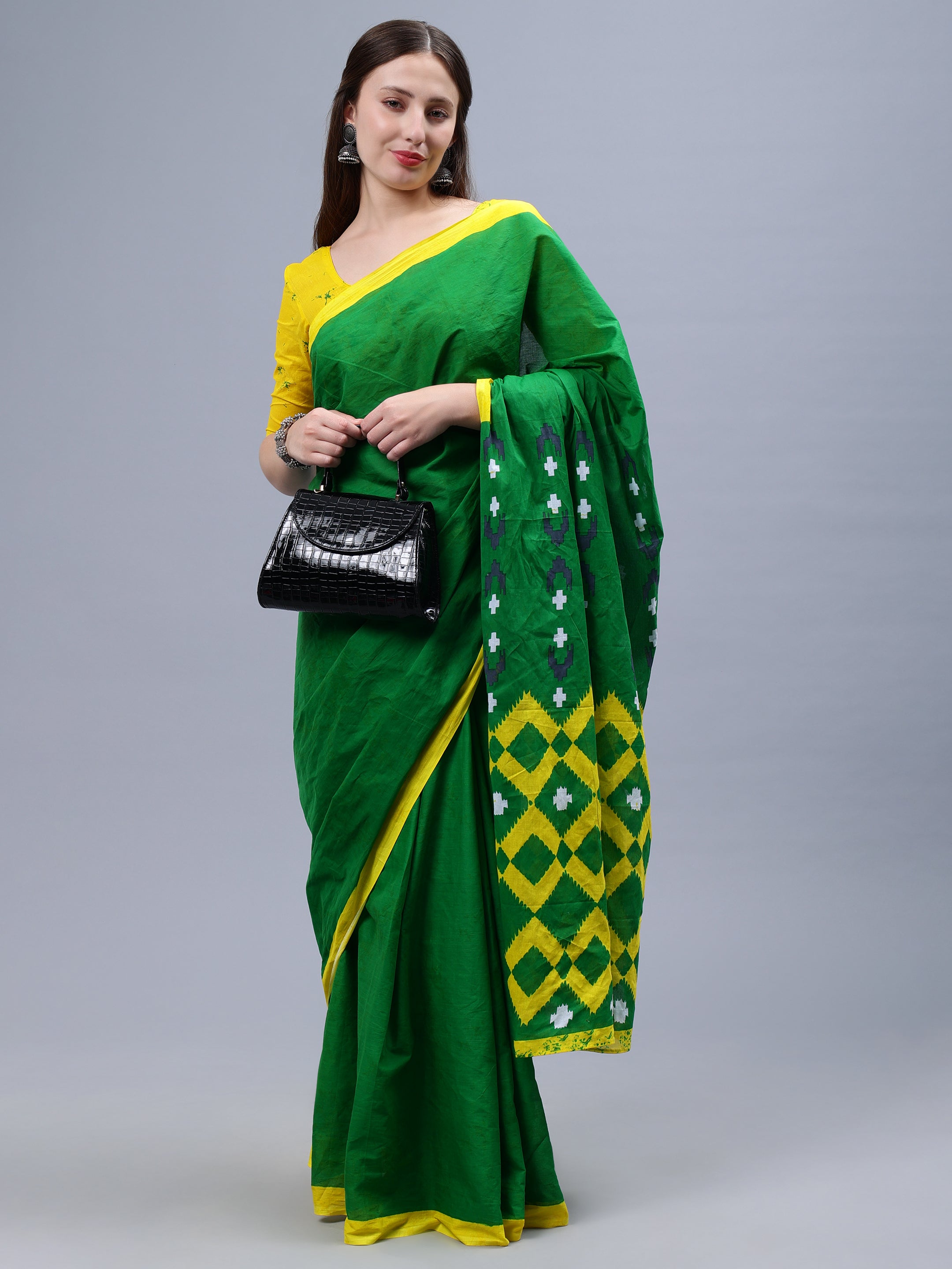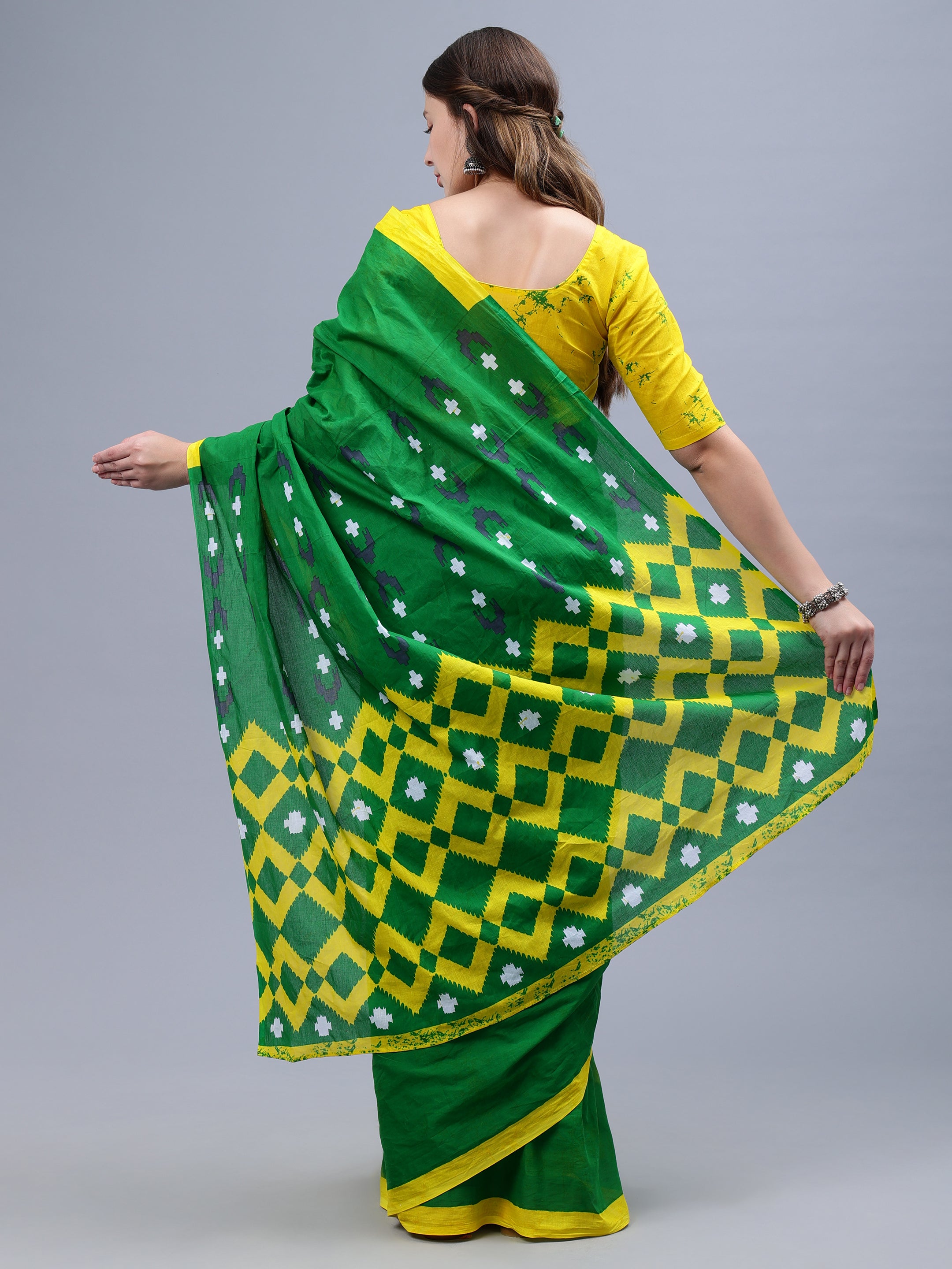 Green Printed Malmal Cotton Saree