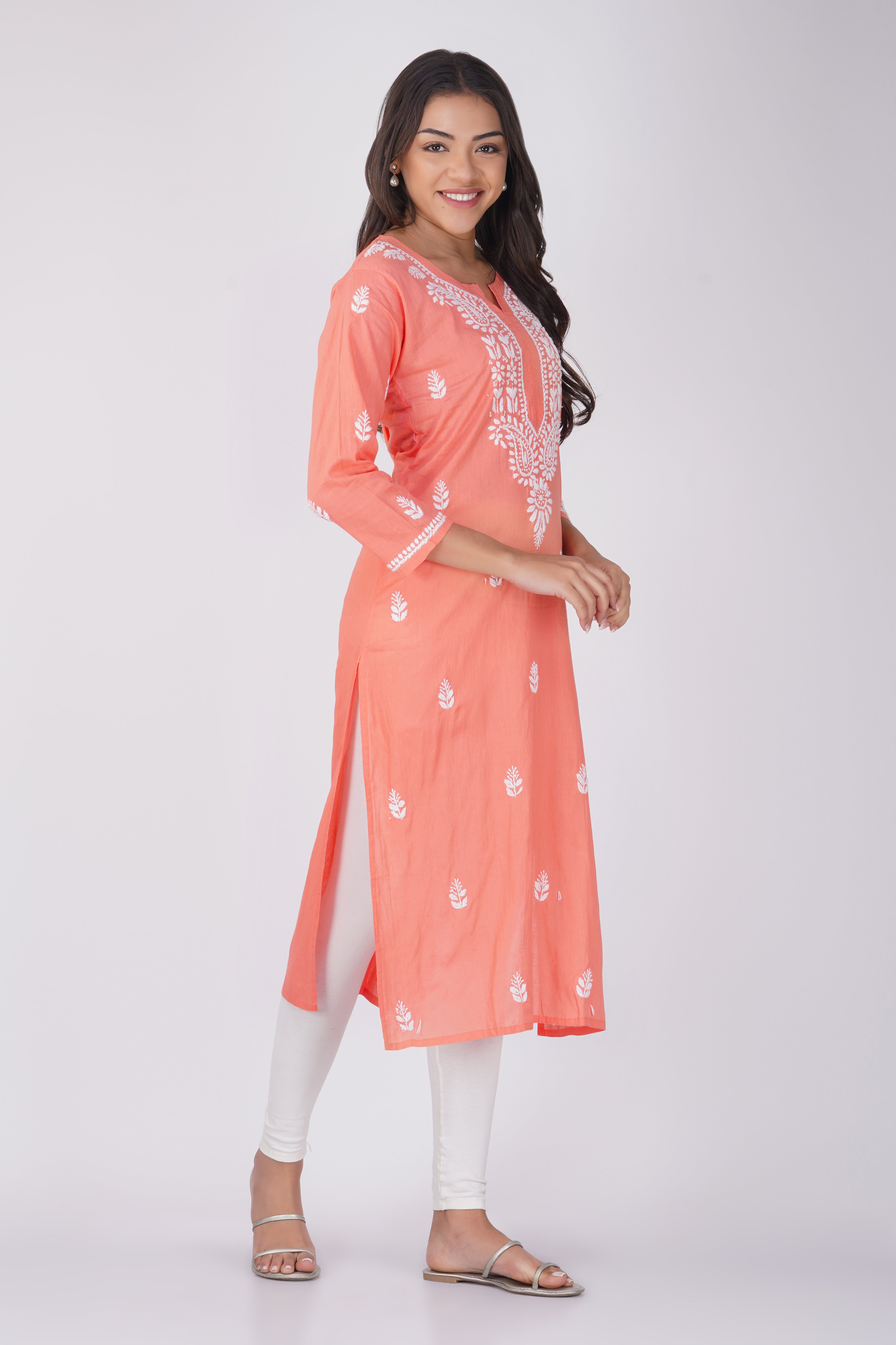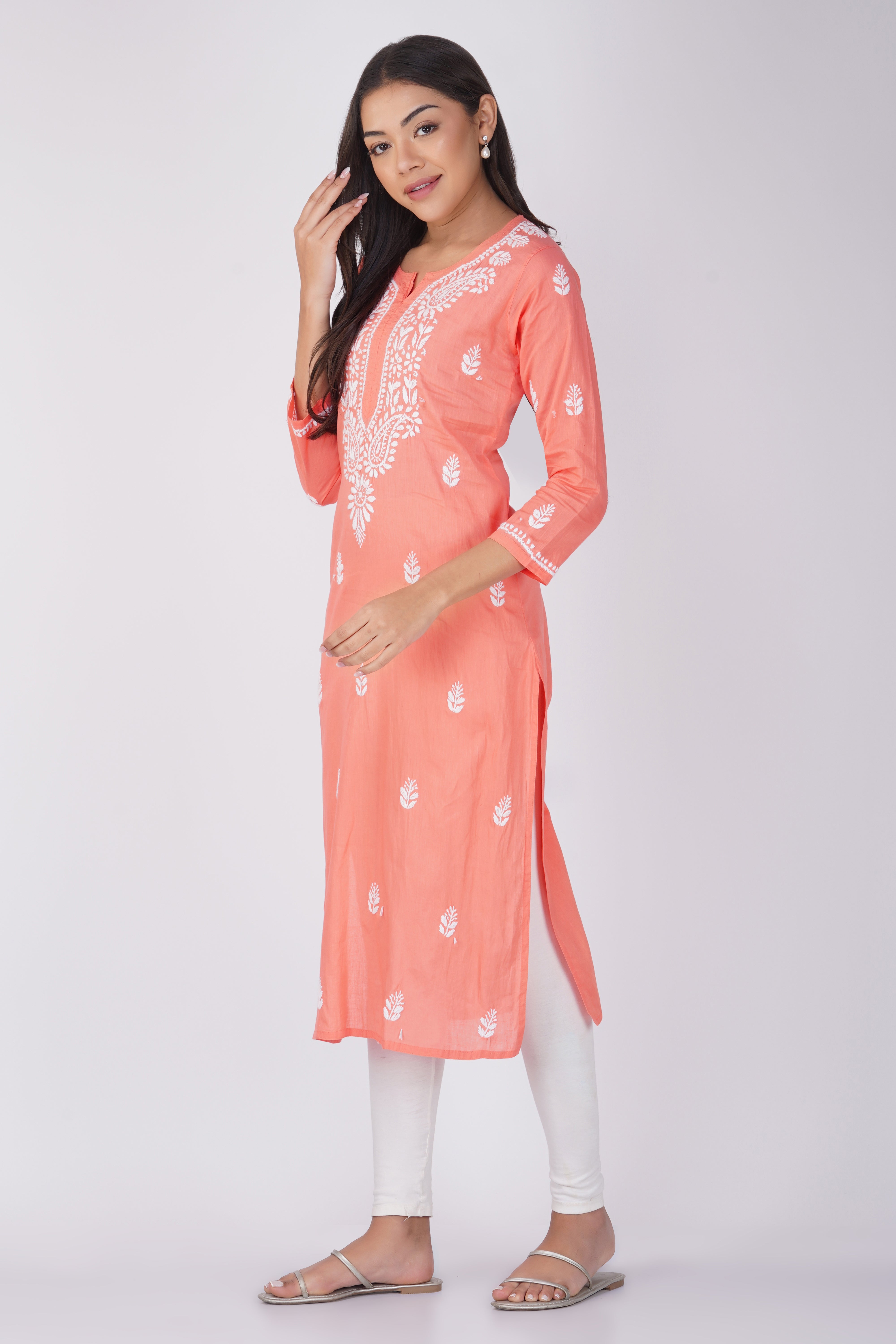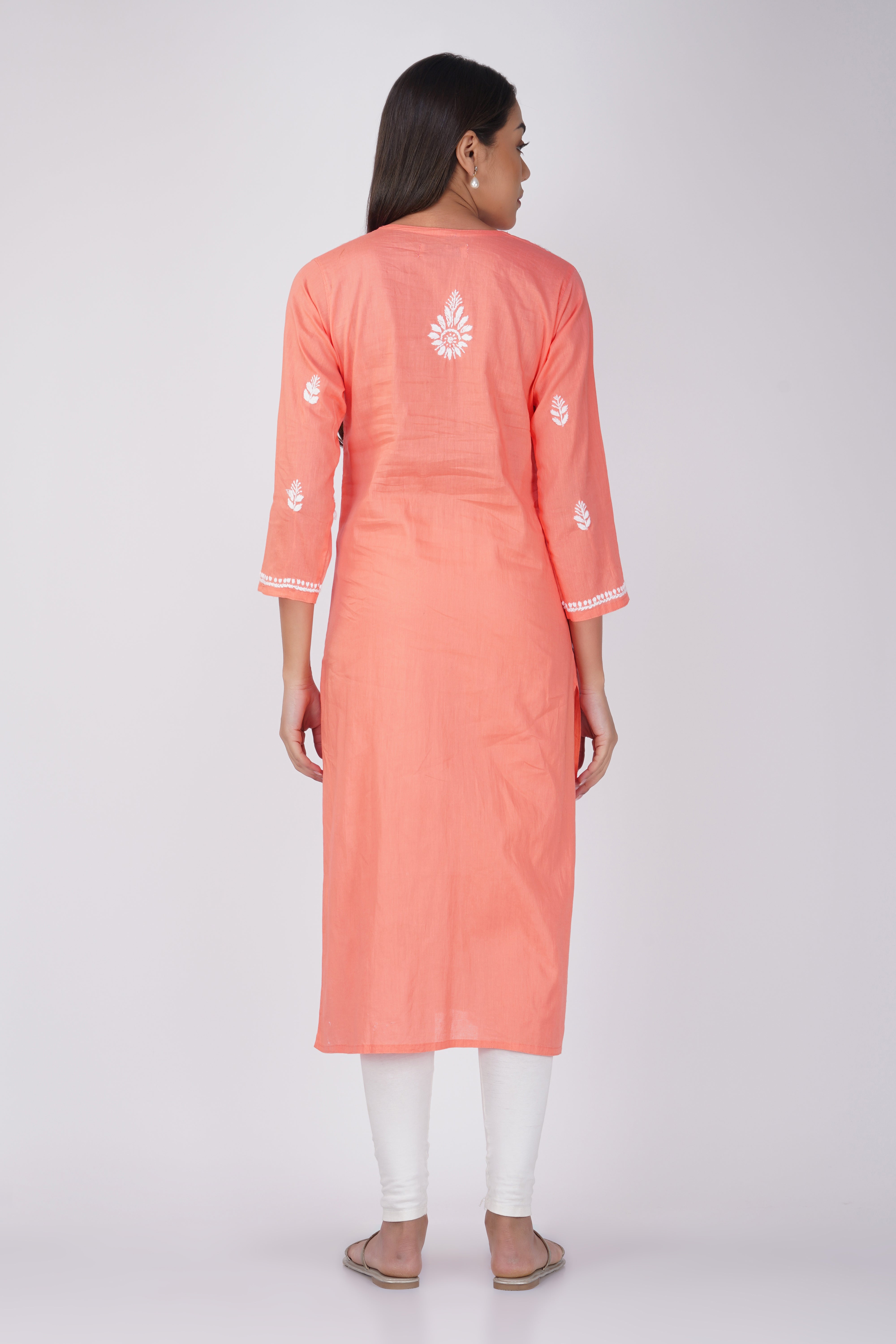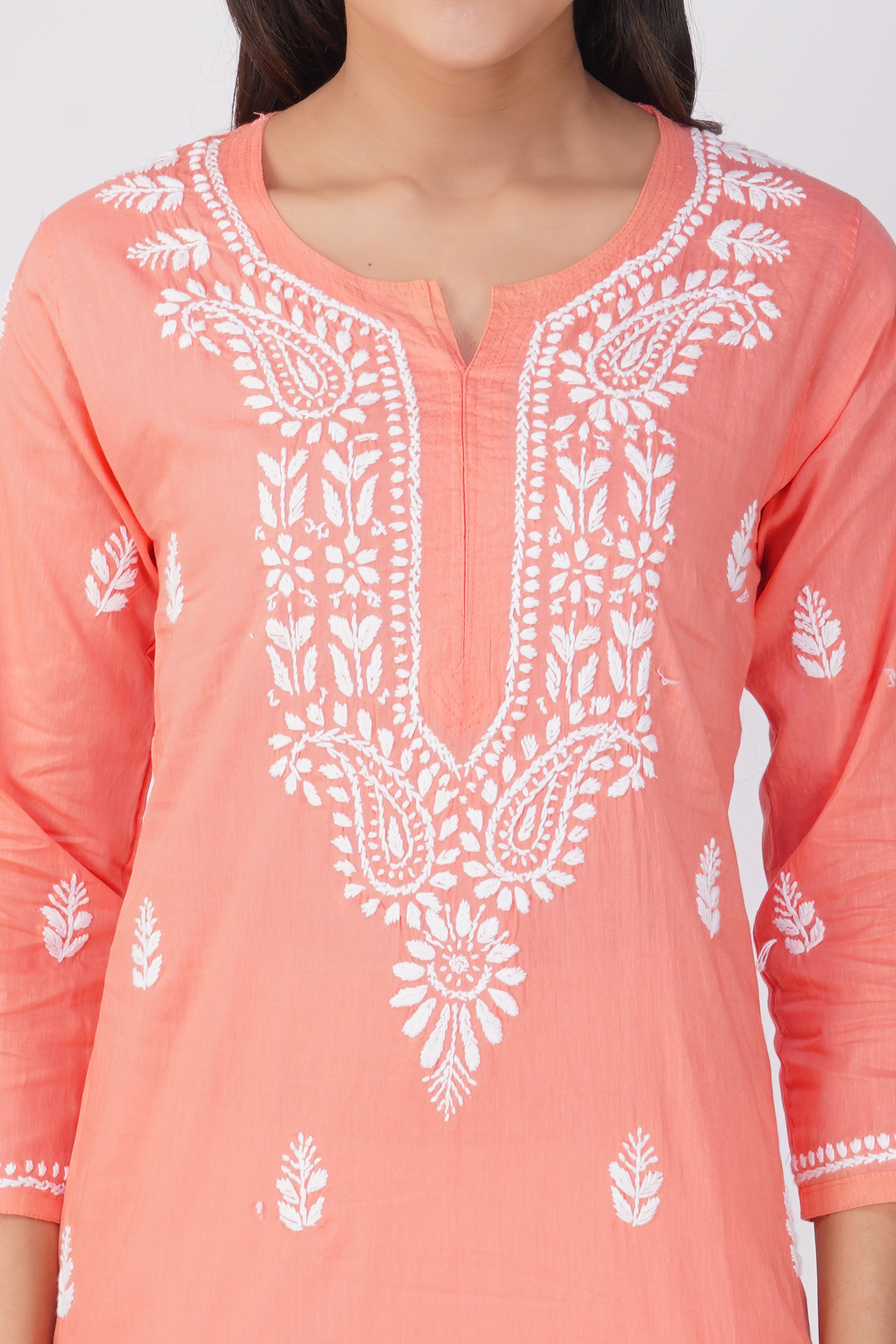 Peach Cotton Chikankari Kurta