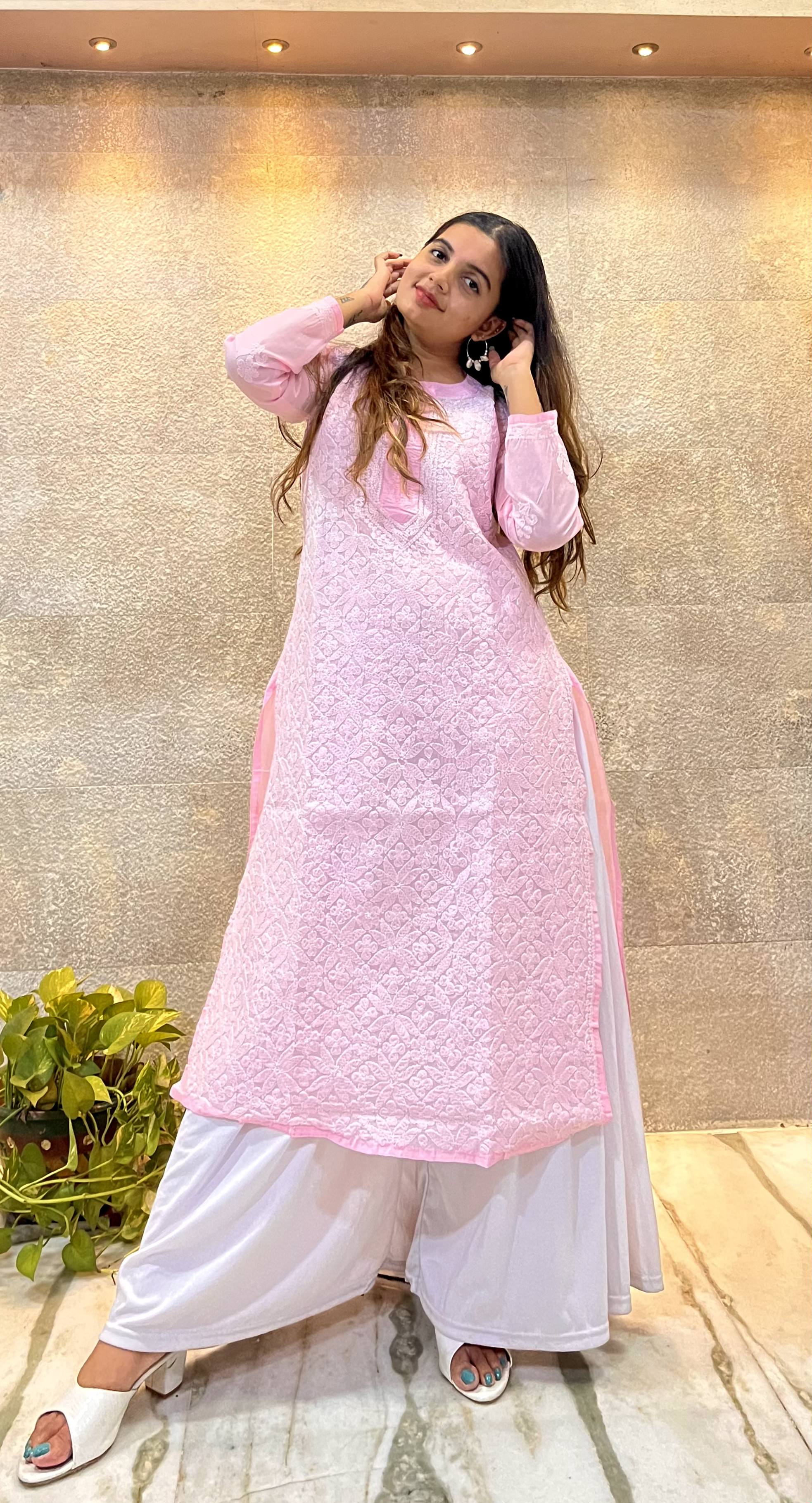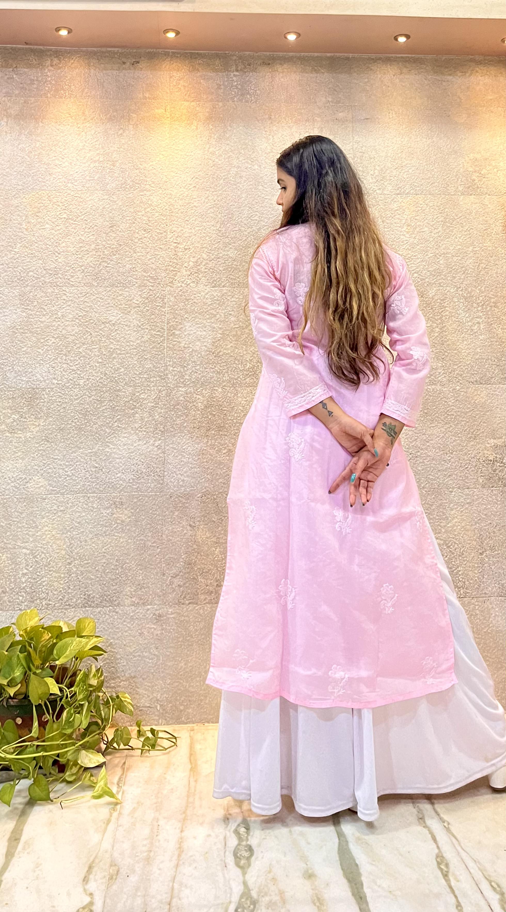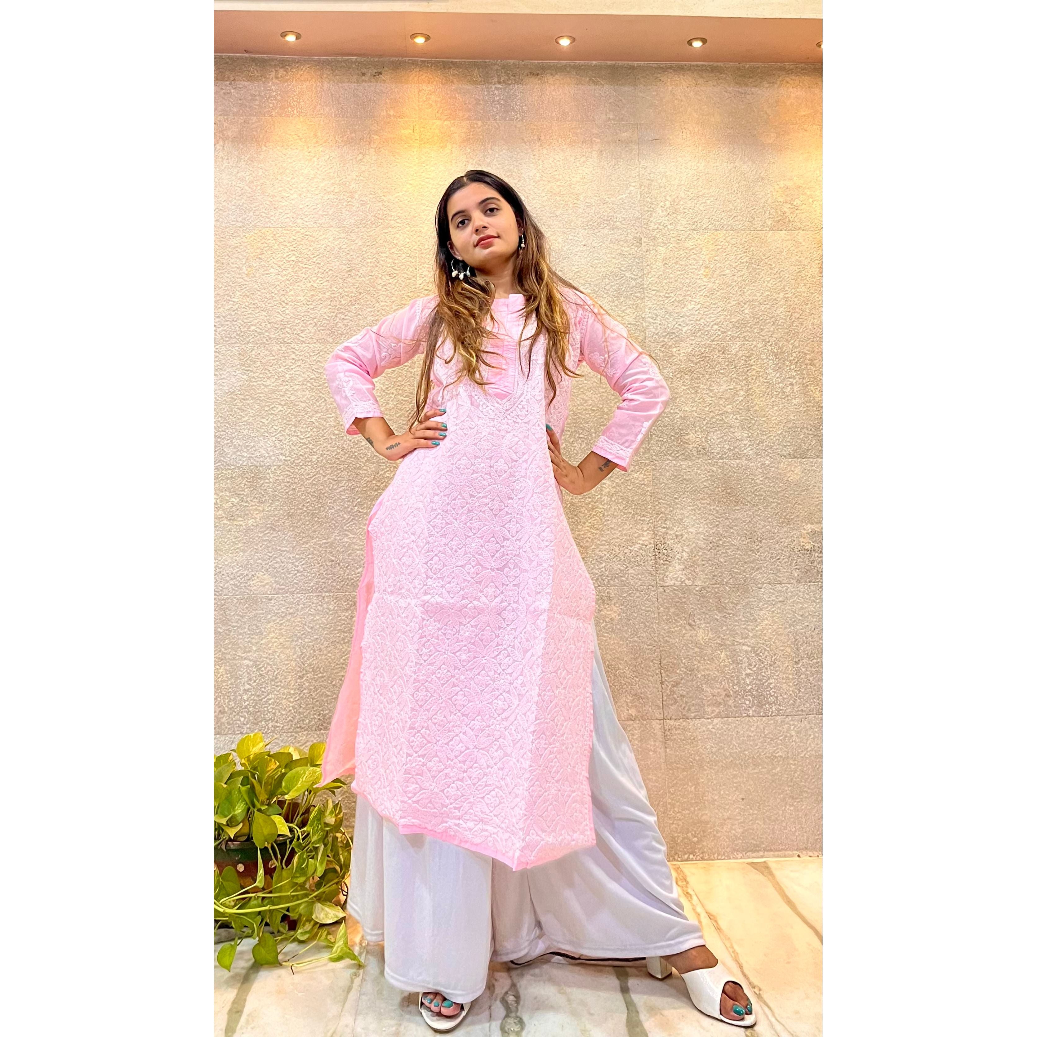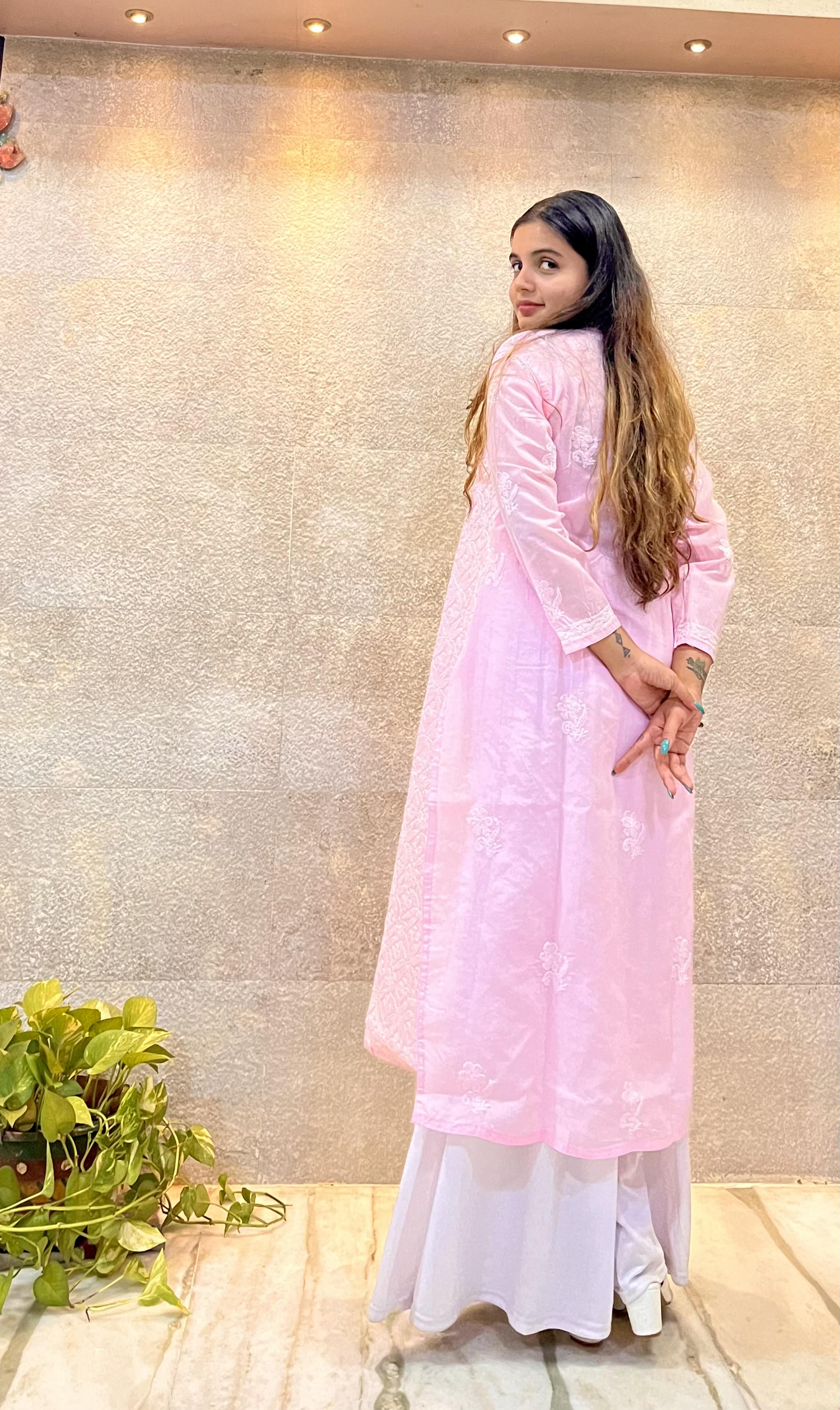 Pink Cotton Chikankari Kurti