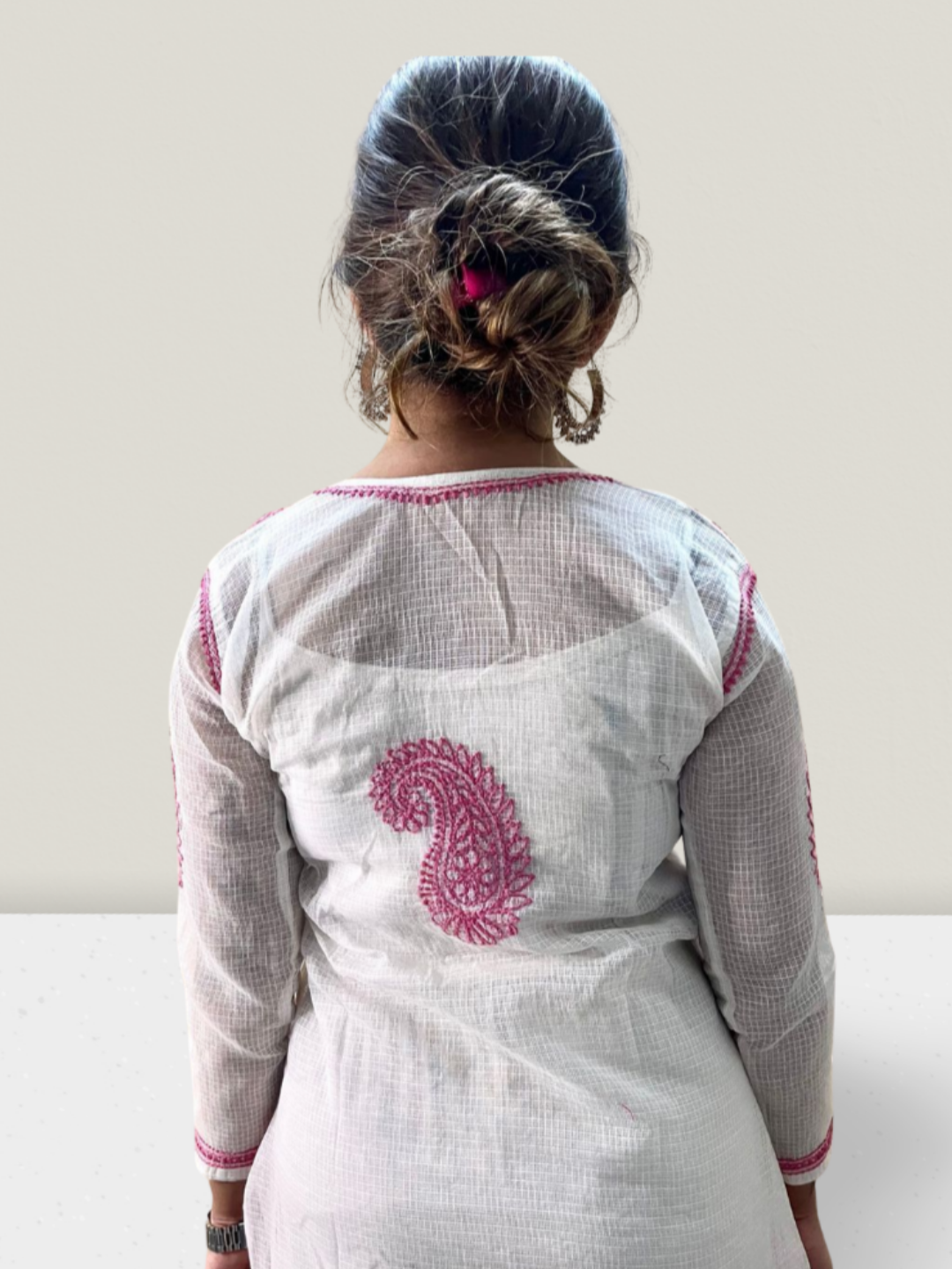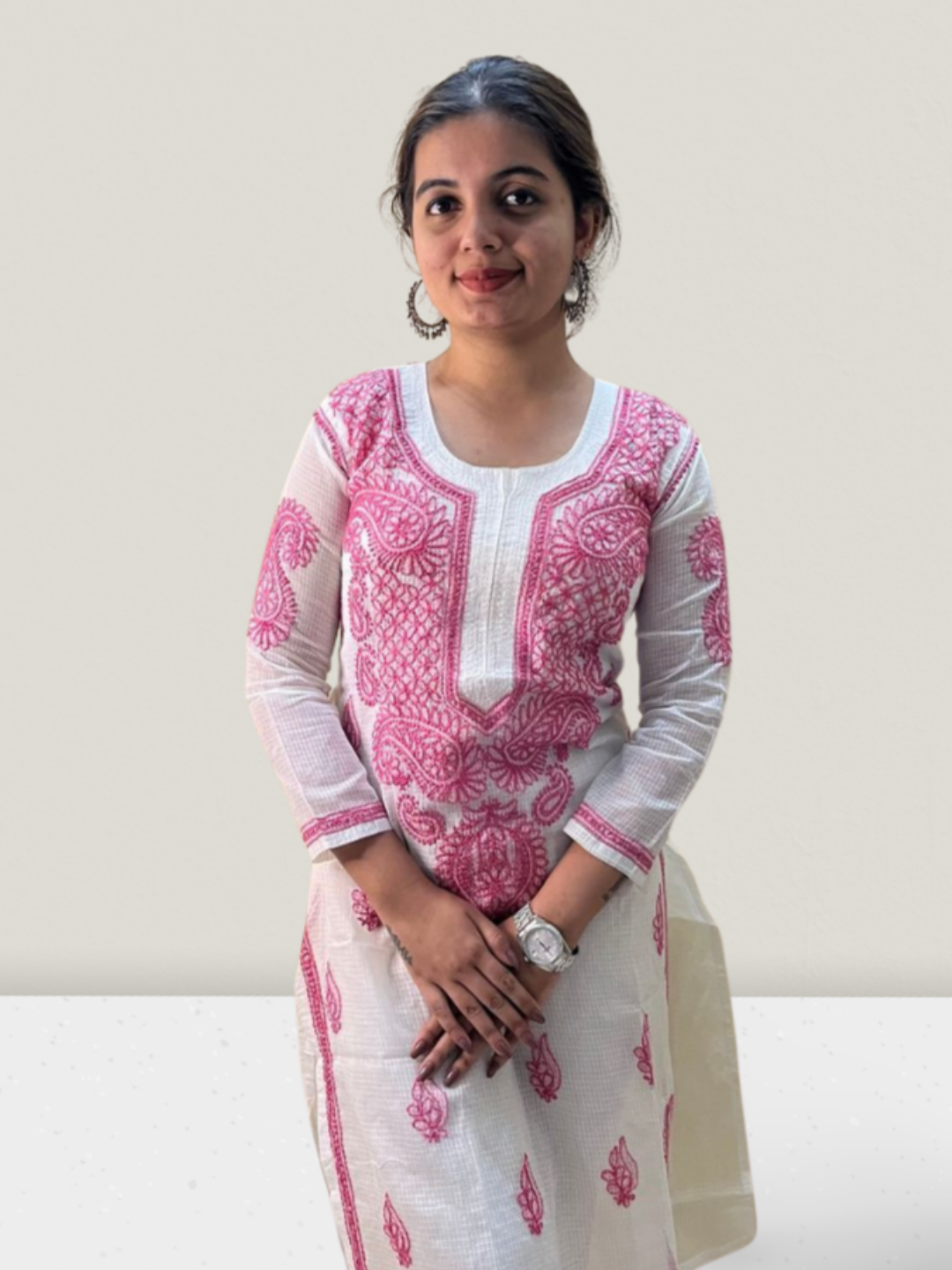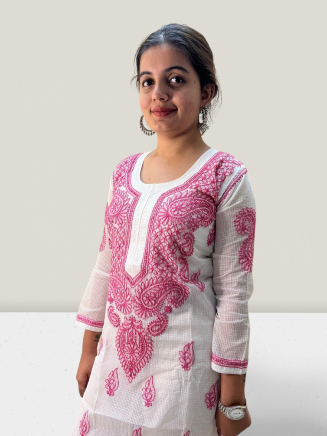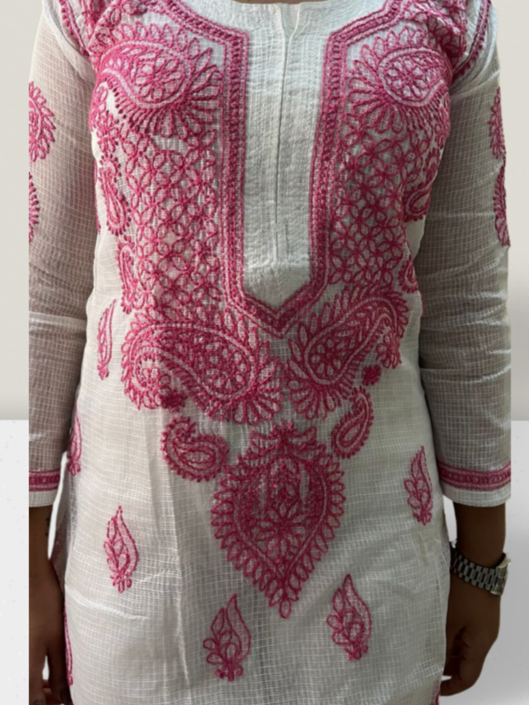 Pink Flower Kota Cotton Chikankari Kurti