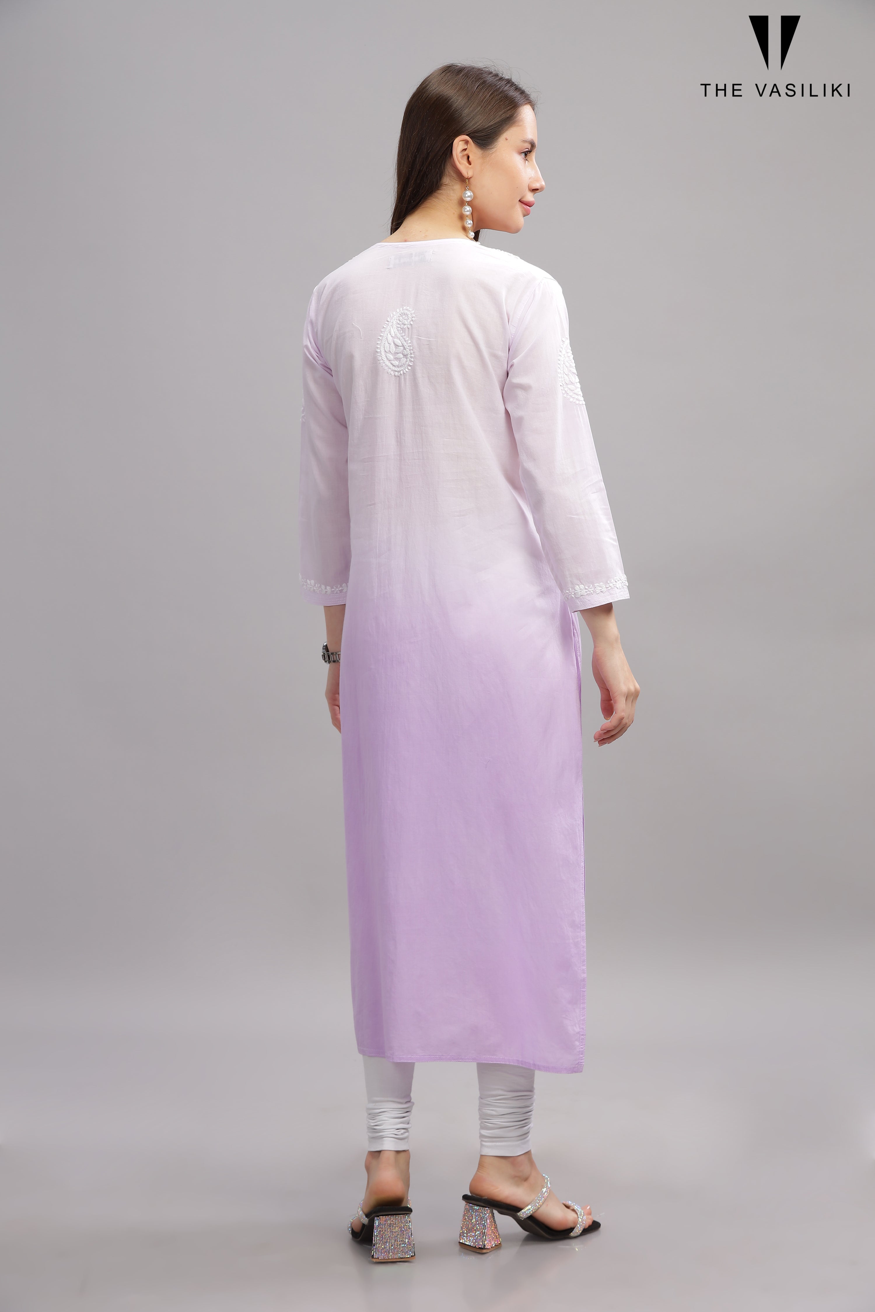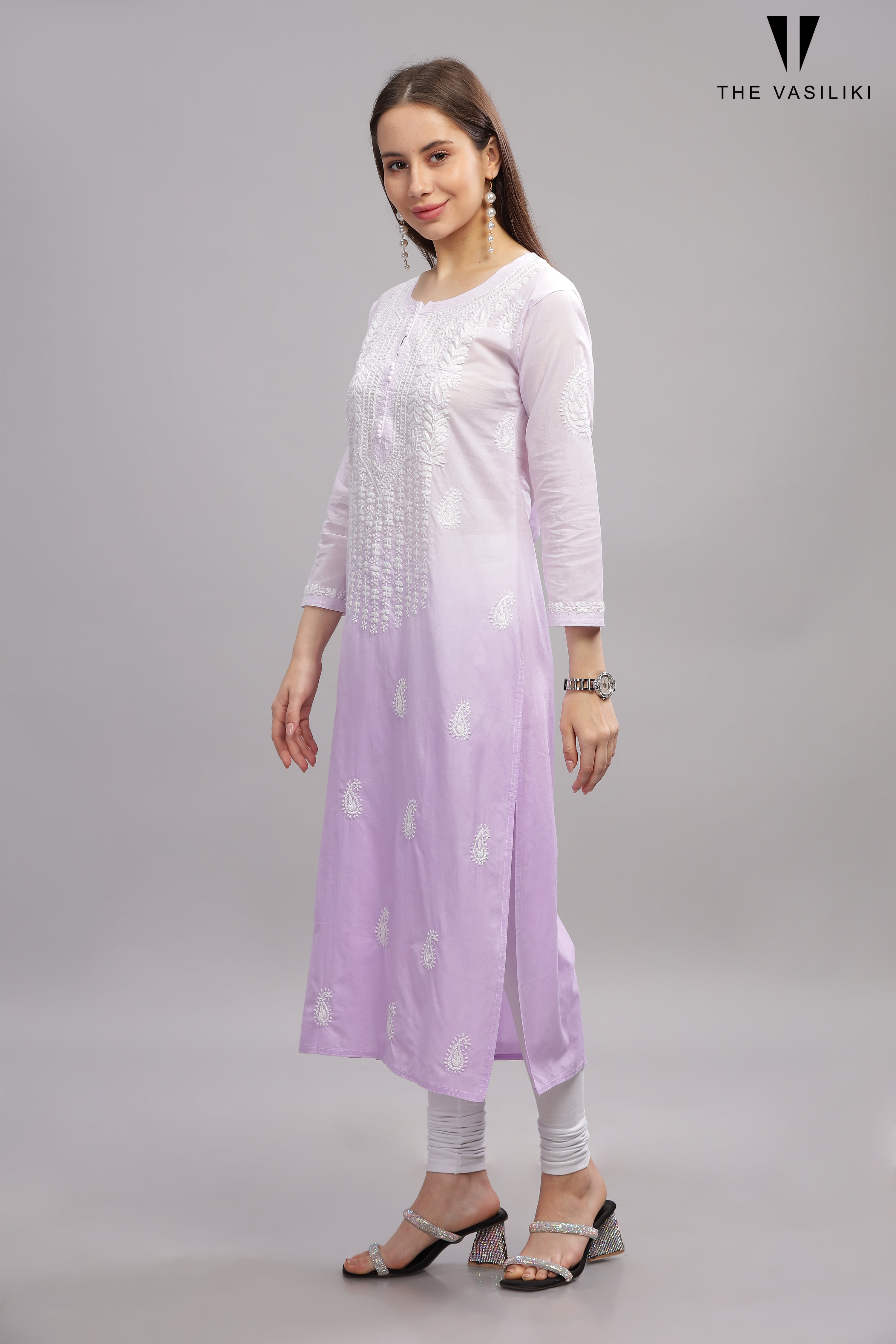 Purple Mulmul Cotton Chikankari Kurta