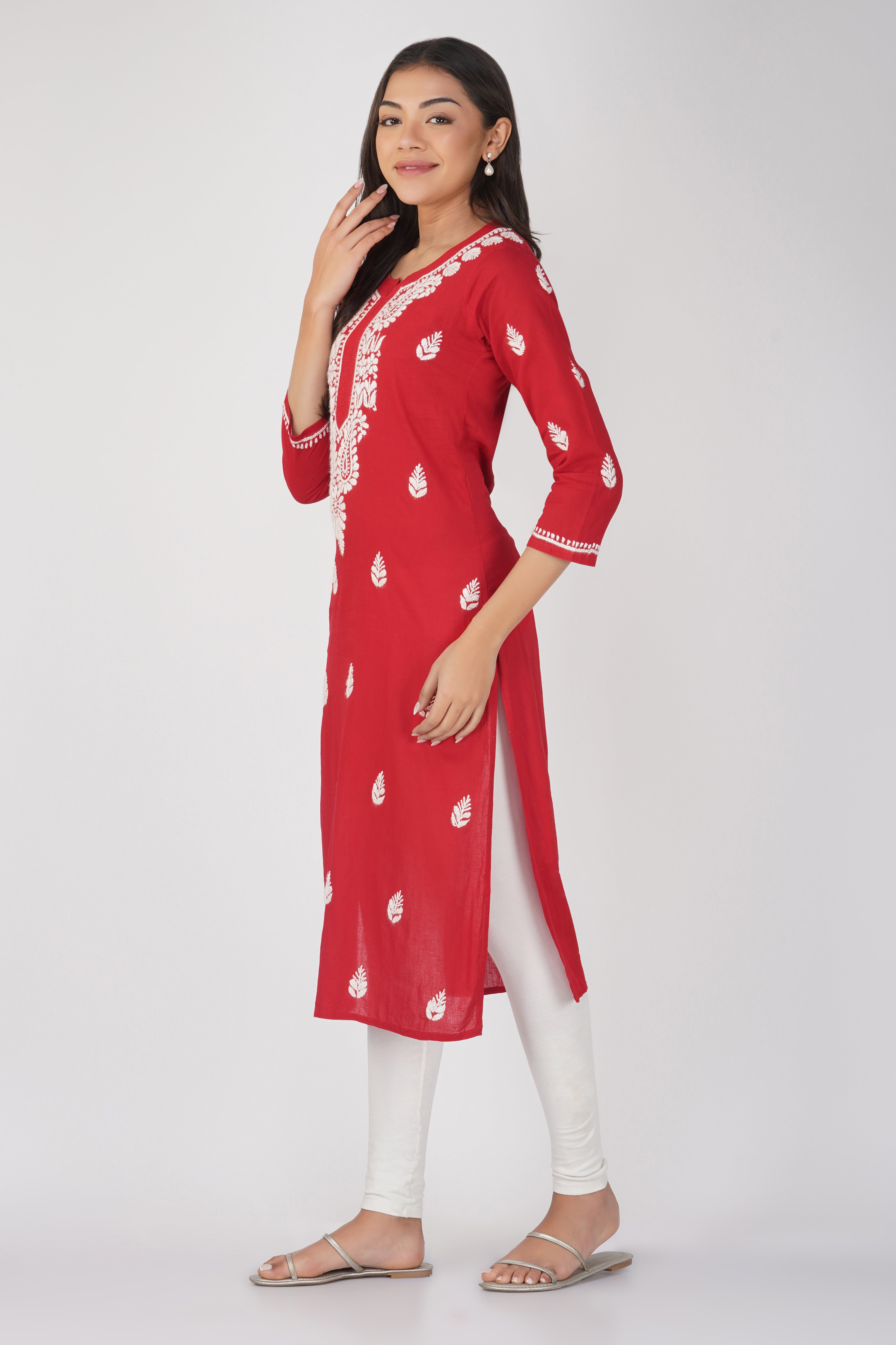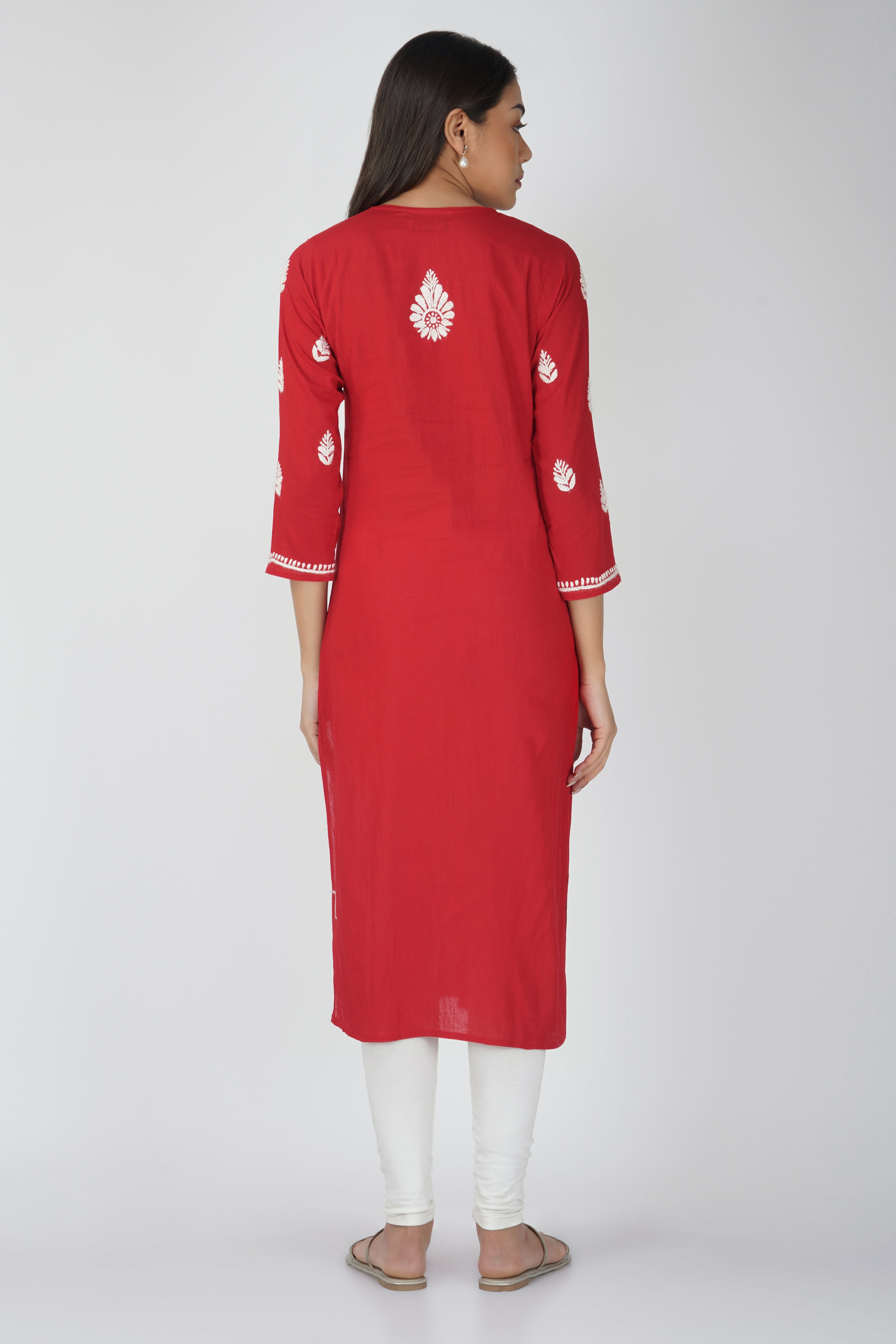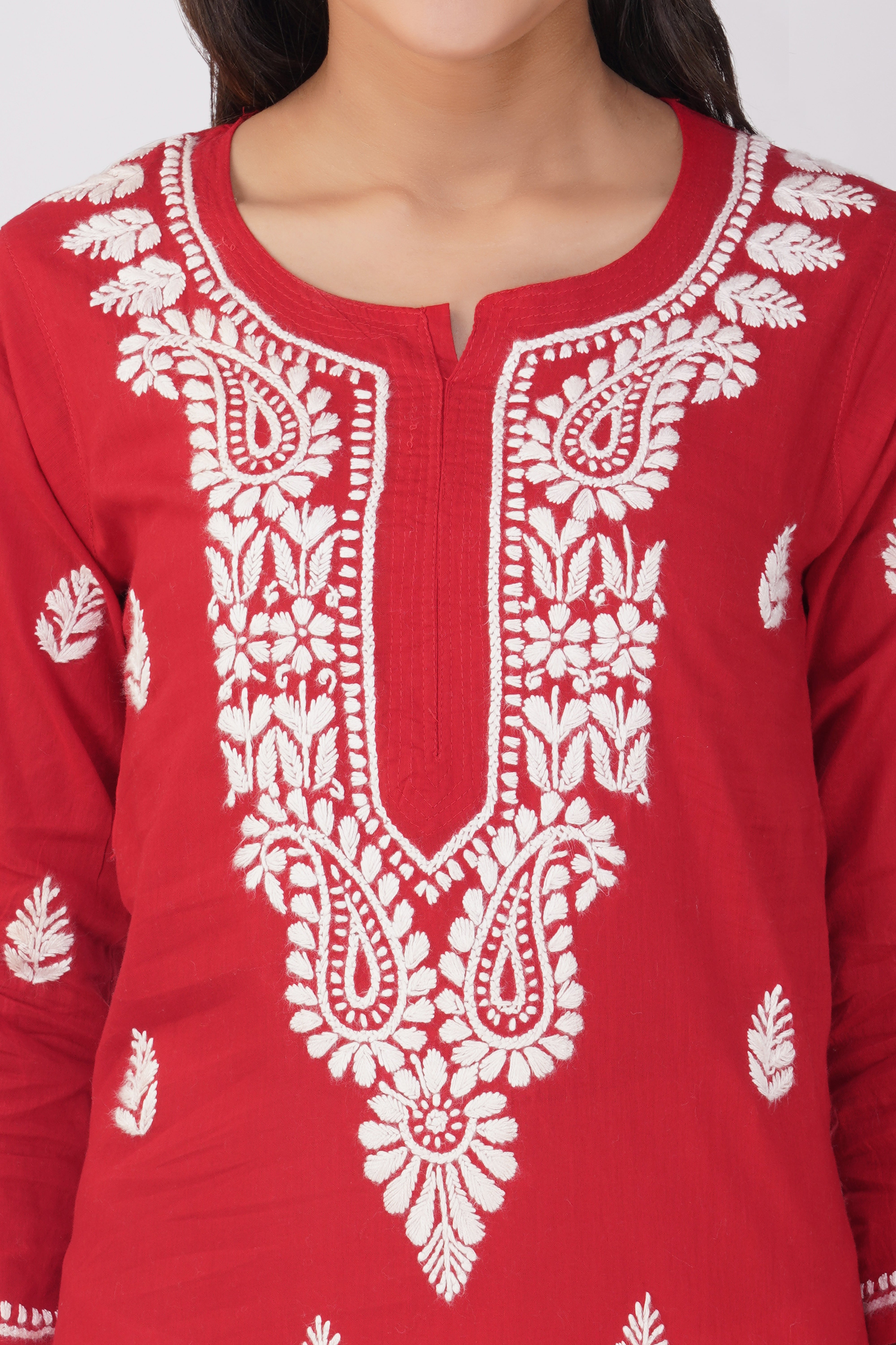 Red Cotton Chikankari Kurta