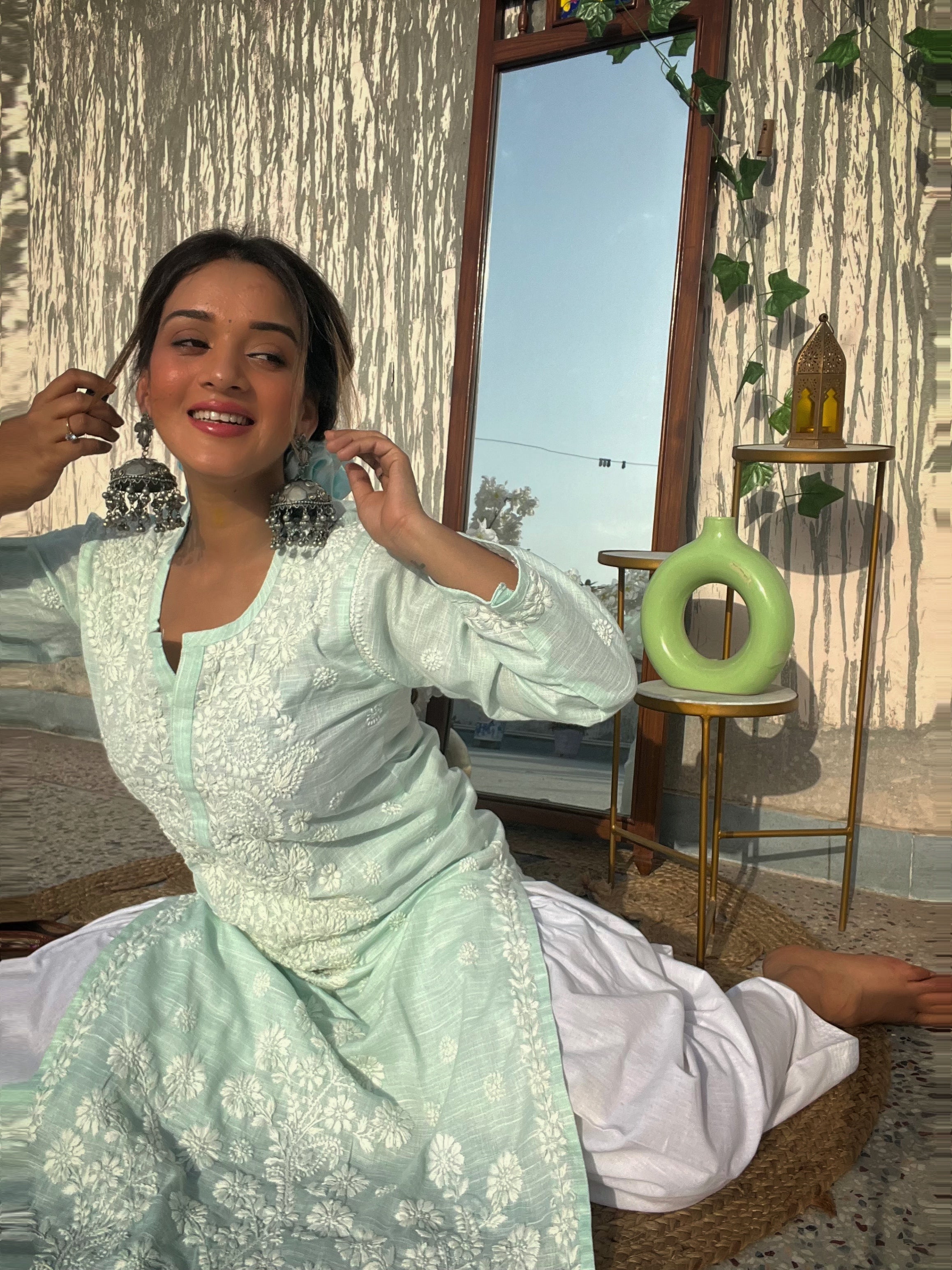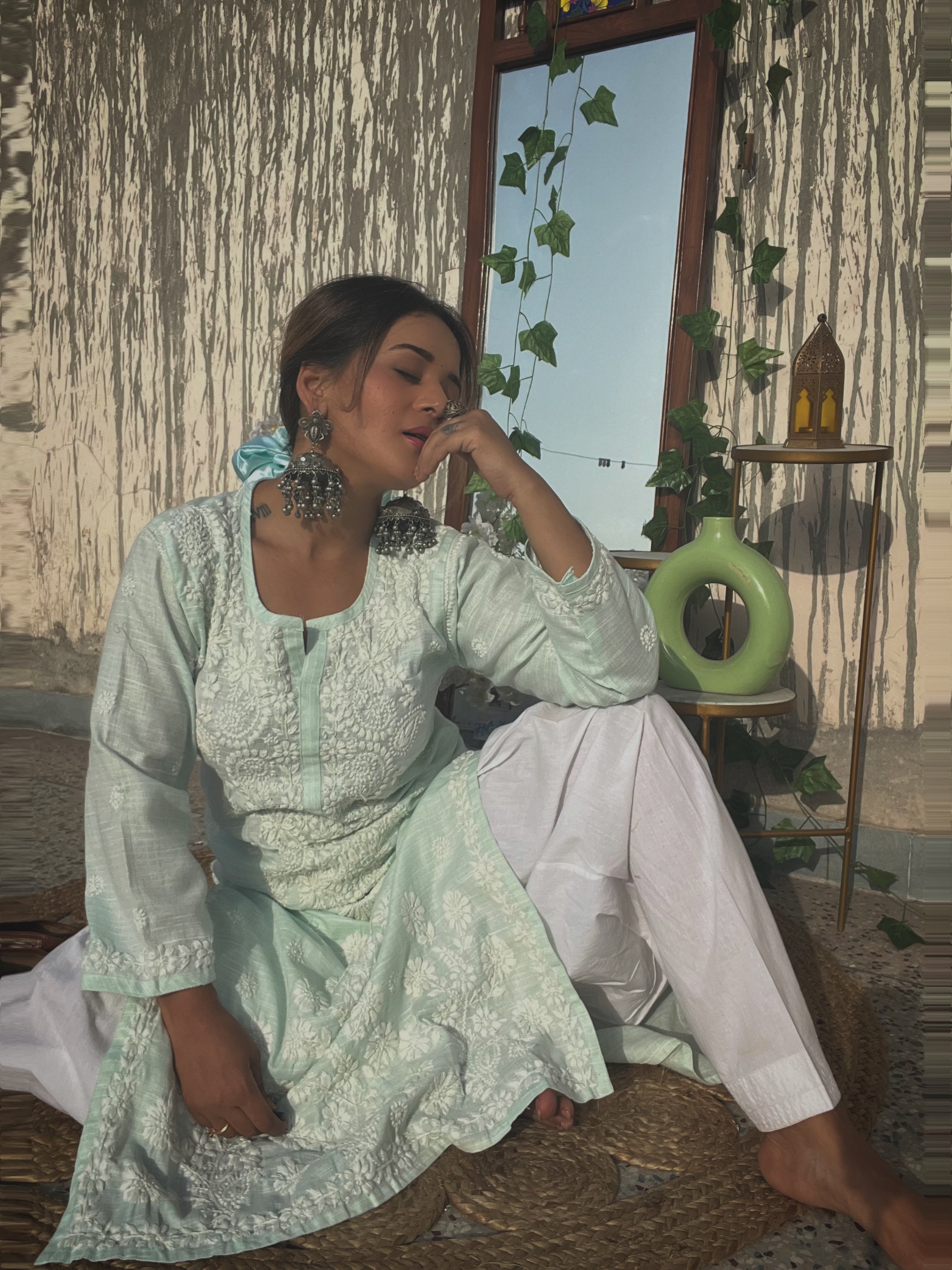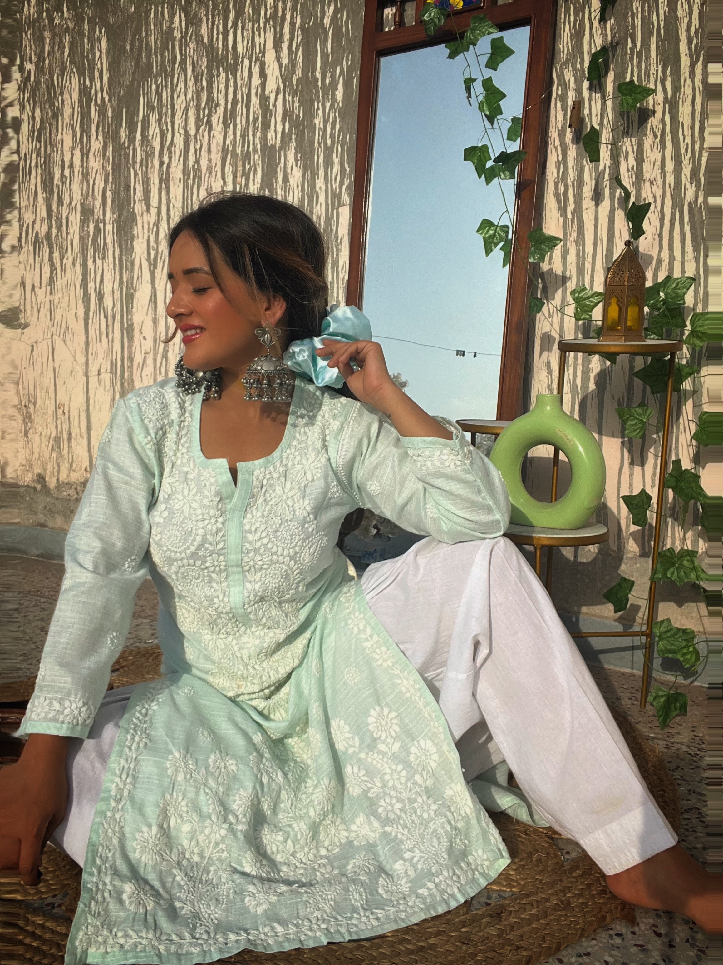 Sea Green Cotton Chikankari Kurti