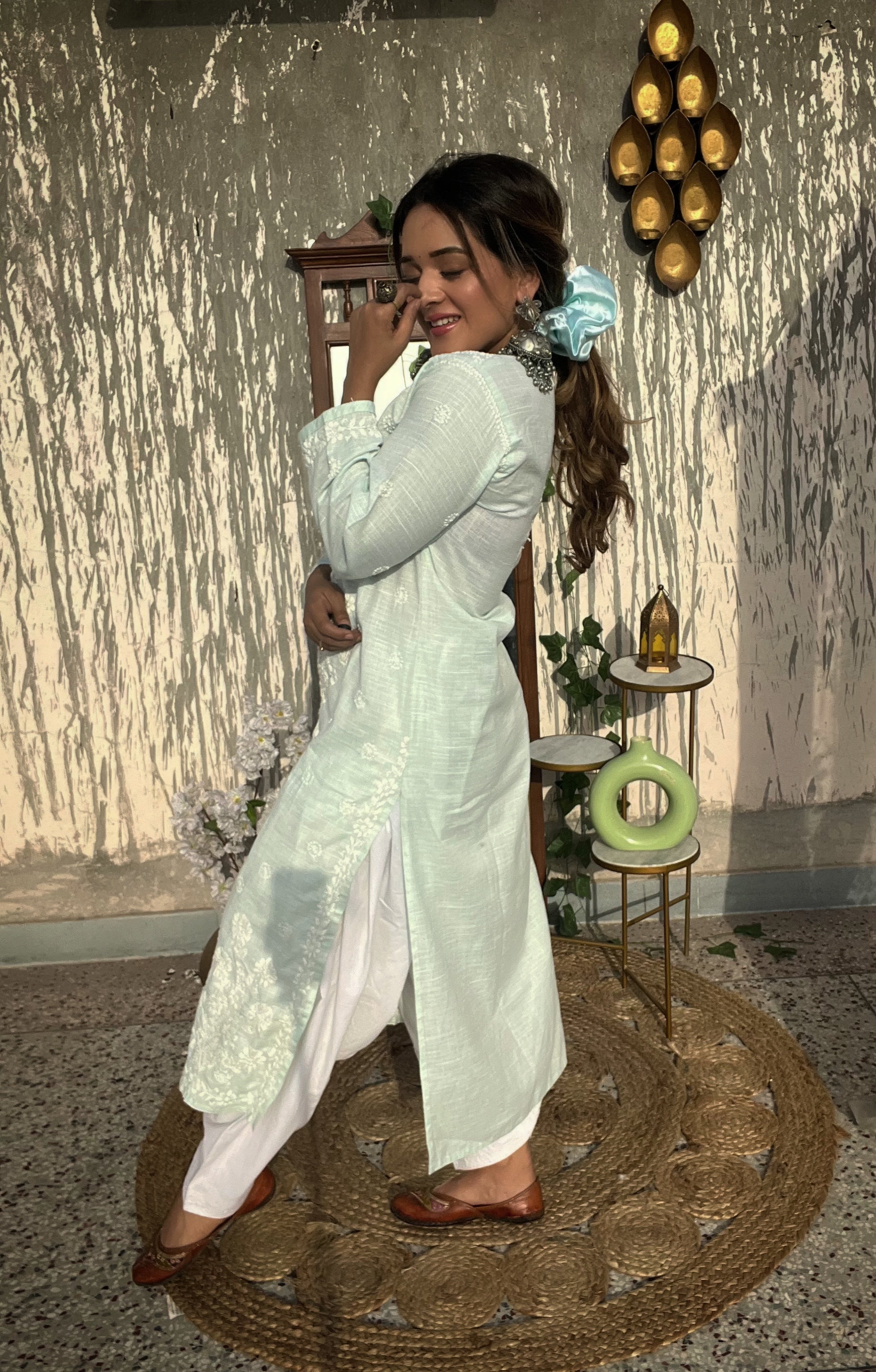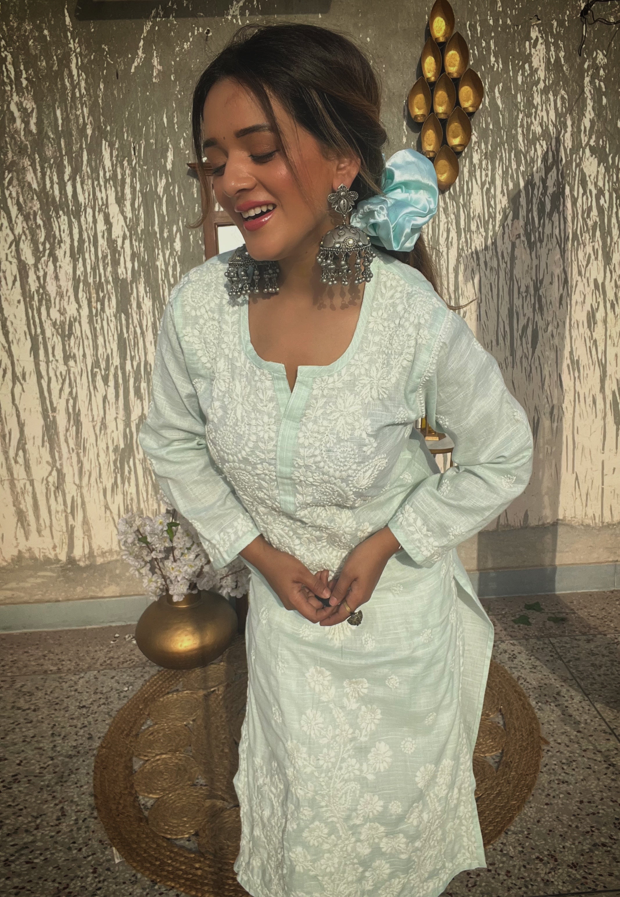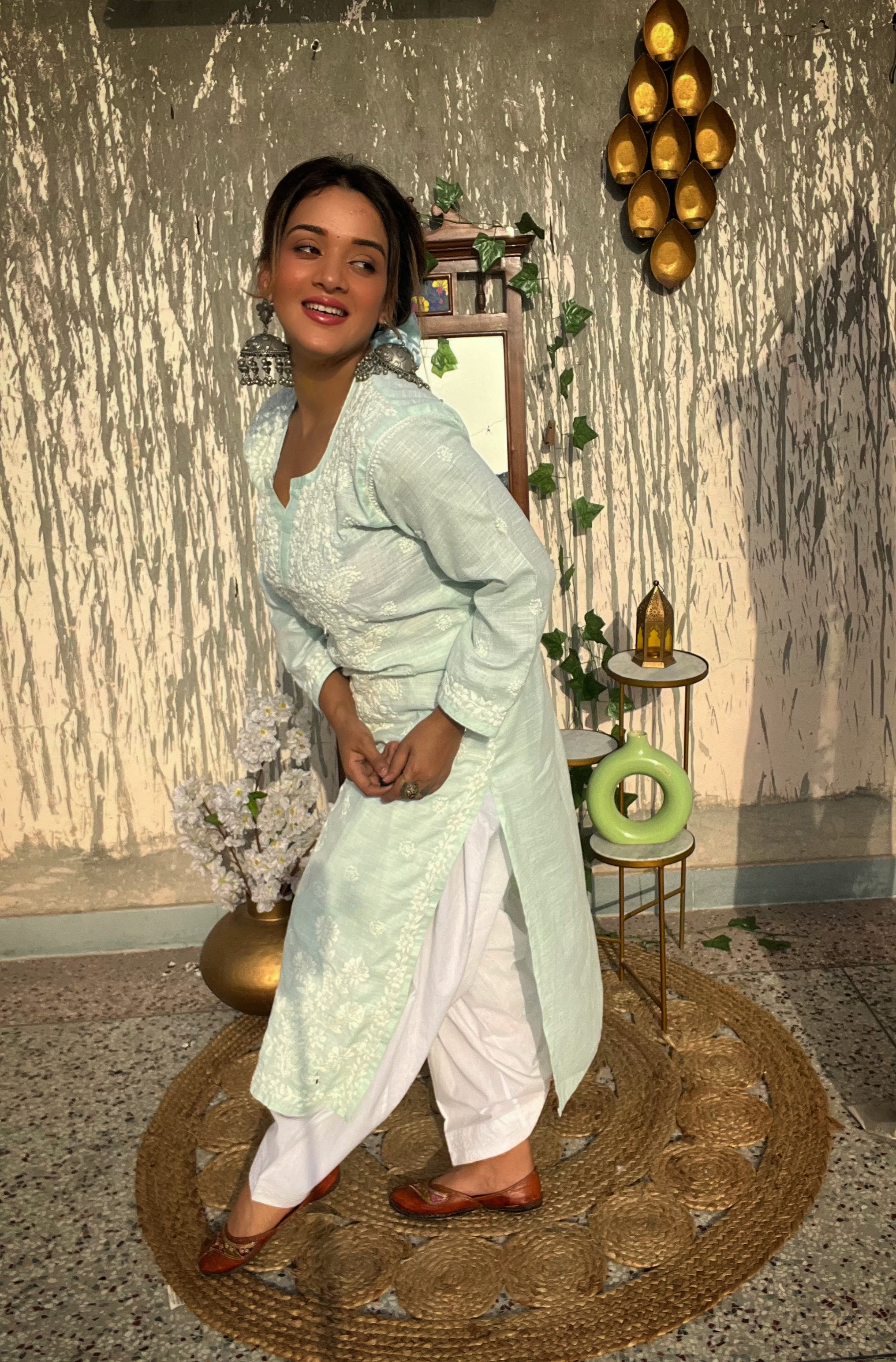Sea Green Cotton Chikankari Kurti